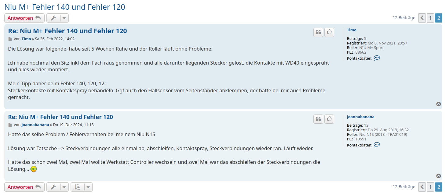 Re: NIU NQi GTS – Error 140 trotz neuem Gasgriff + roter Stecker nicht angeschlossen
