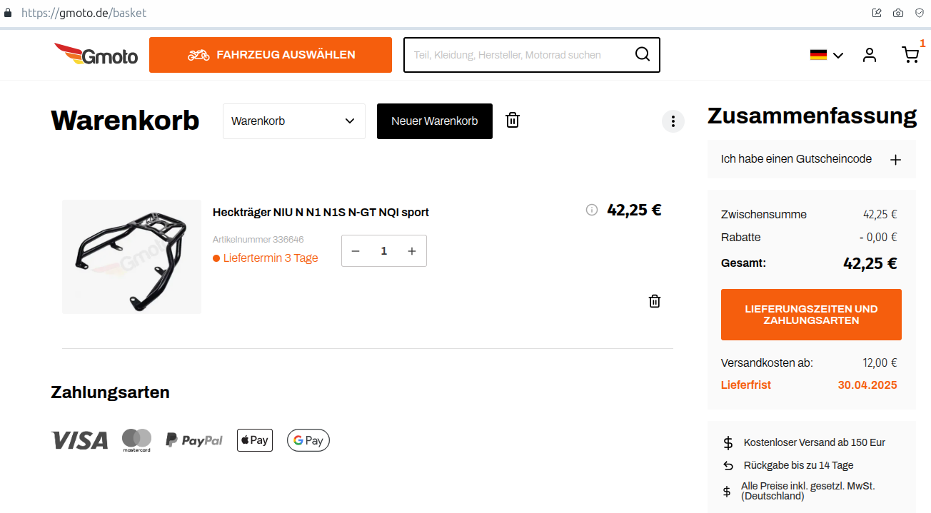 Re: Gepäckträger -neu- für NIU N-Serie günstige Quelle
