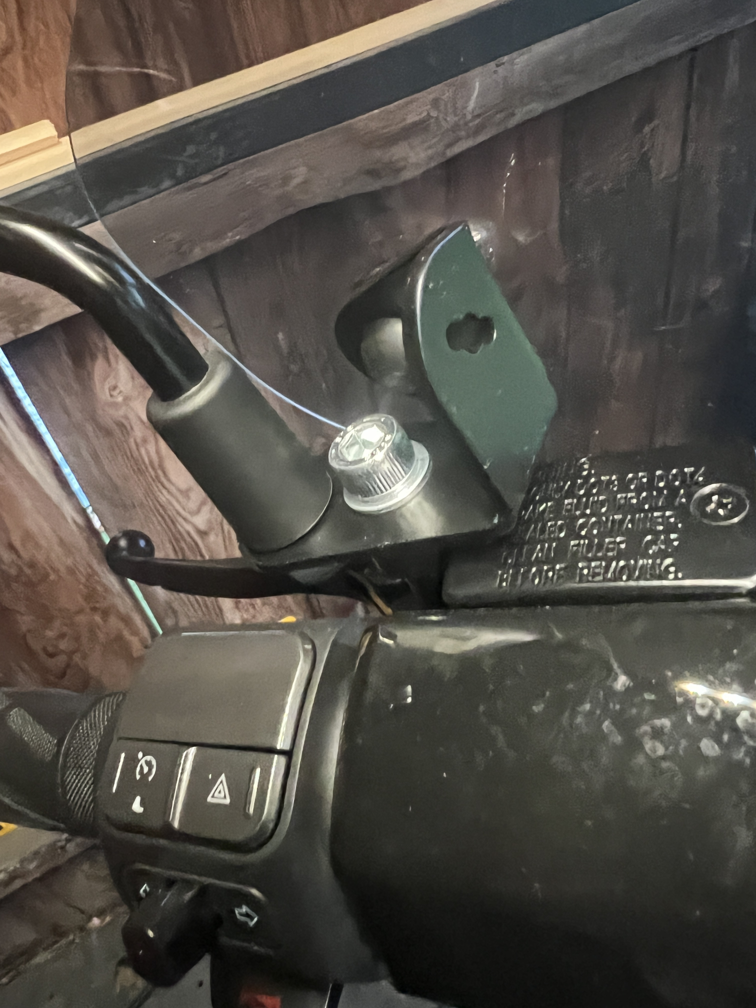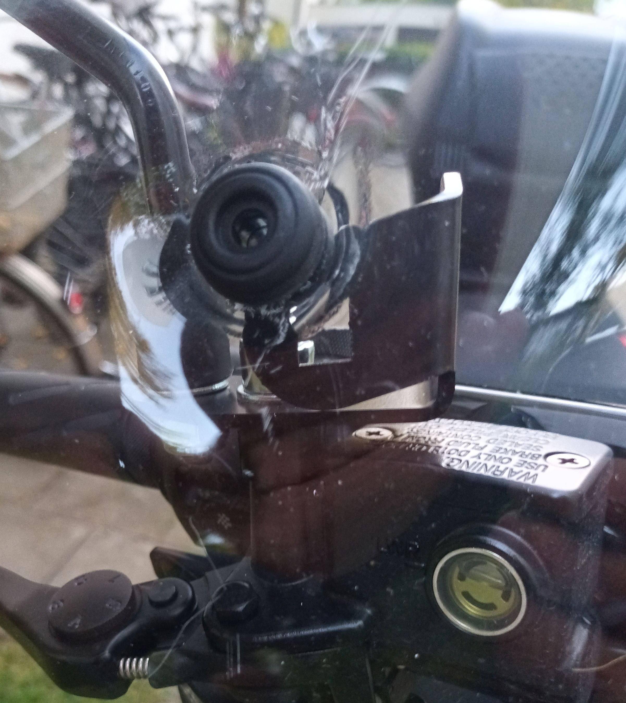 Hattest du ähnliche Probleme, Micha? Das einzige, was wahrscheinlich hilft - und das ist sicherlich auch der Grund - ist, die komplette Einheit, wo der Spiegel angeschraubt ist, etwas nach oben zu drehen. Wenn ich genau vergleiche, sehe ich auch, dass der rechte Bremshebel etwas tiefer ist als der linke.