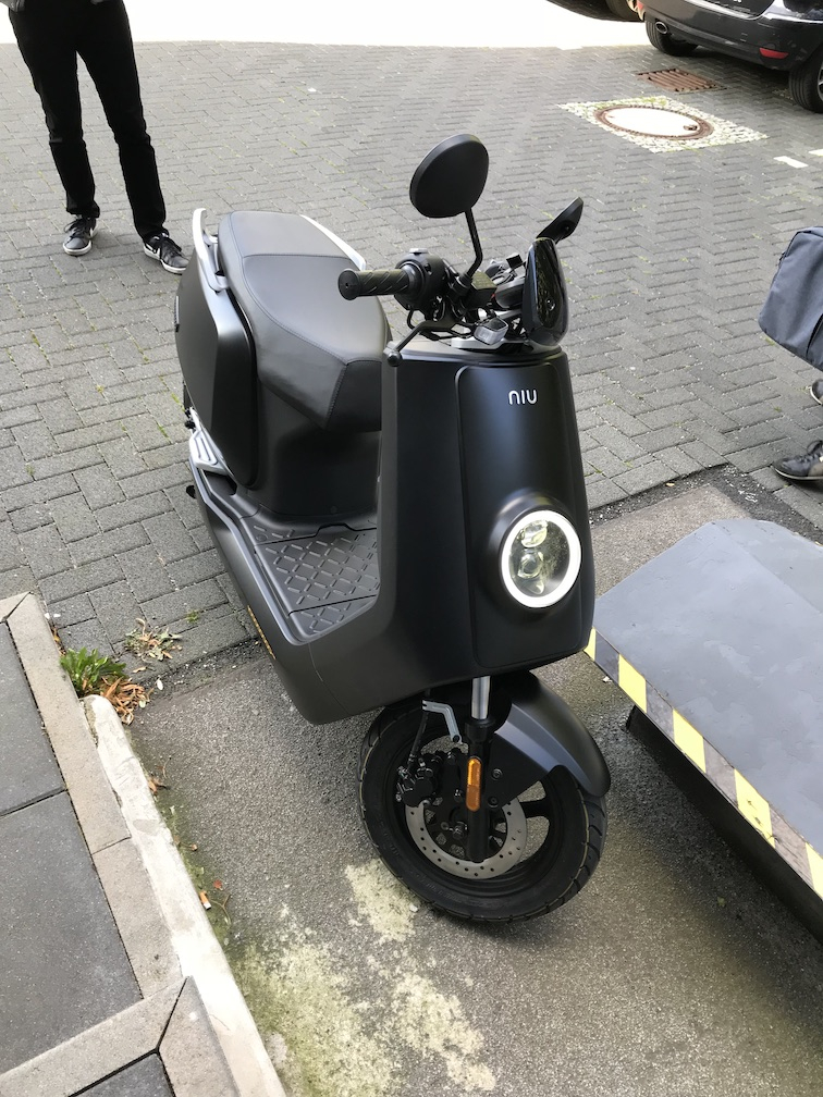 Ich bin relativ spontan zu meinem NIU gekommen. Konnte ihn letzten Freitag bei meinem Händler abholen (lustigerweise waren da gerade einige NIU Mitarbeiter zu besuch). Ich hatte sehr viel Glück und sogar noch ein mattschwarzes Sondermodell bekommen.