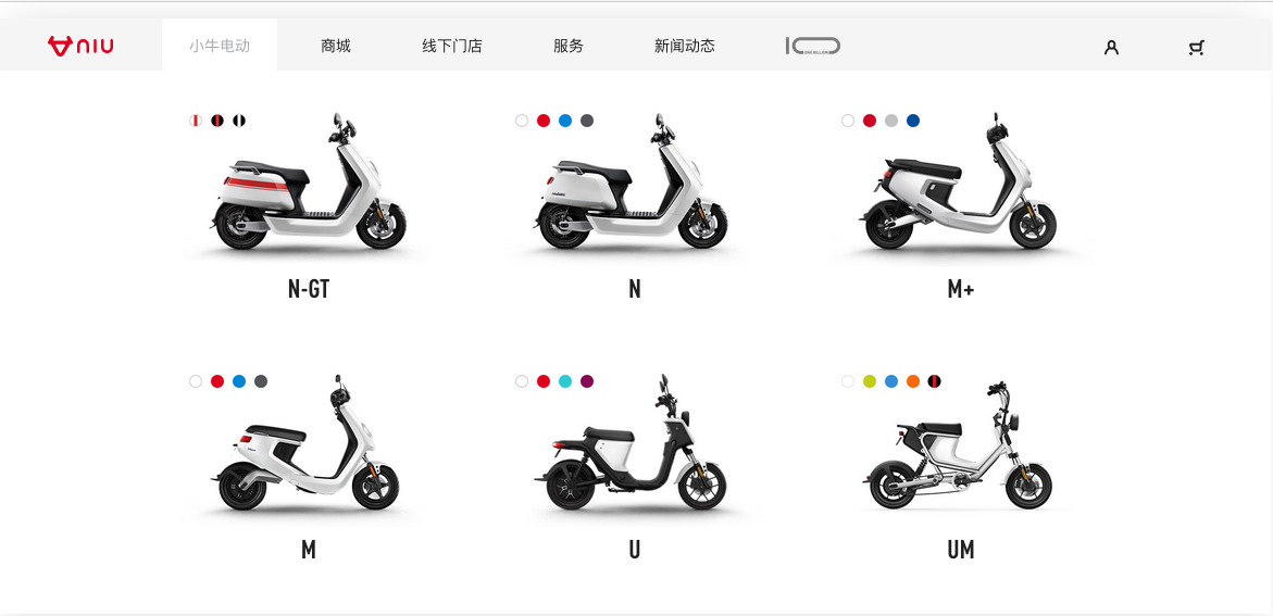 - Roller: NIU N1S (2017), Trinity Jupiter 11 (2017), NIU N-GT (2019)