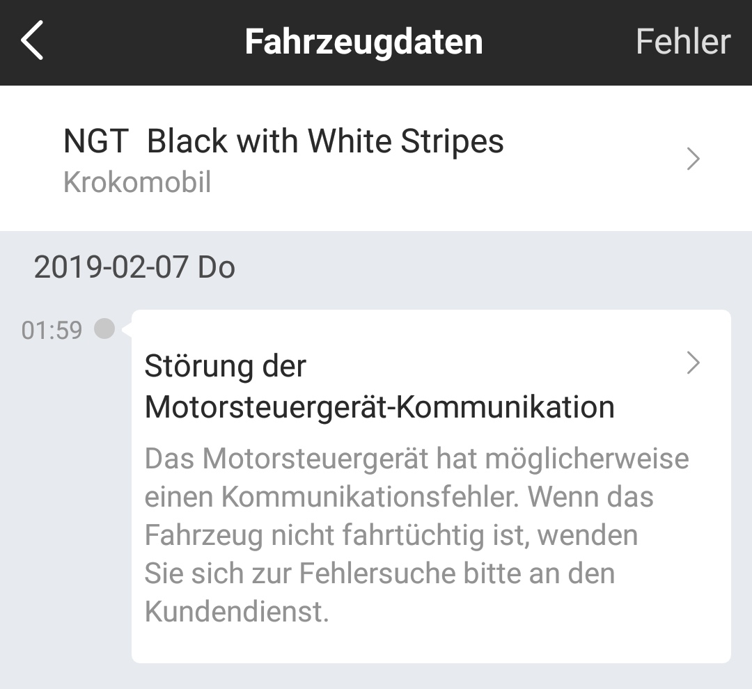 Heute Nacht ploppte dann in der Niu-App direkt folgender Fehler auf: