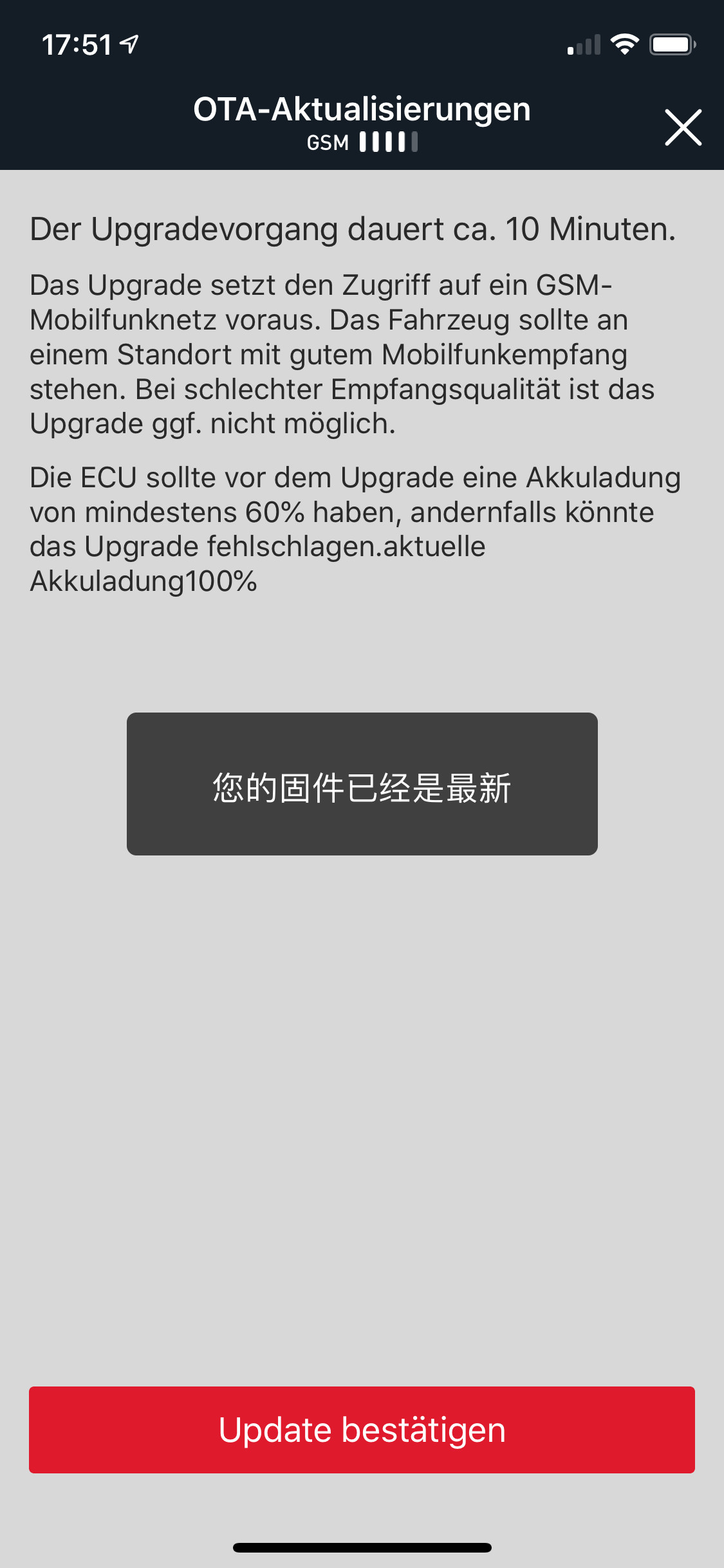BEstätigt man, gelangt man in die OTA-Aktualisierung und den Hinweis "Neue ECU-Version verfügbar"