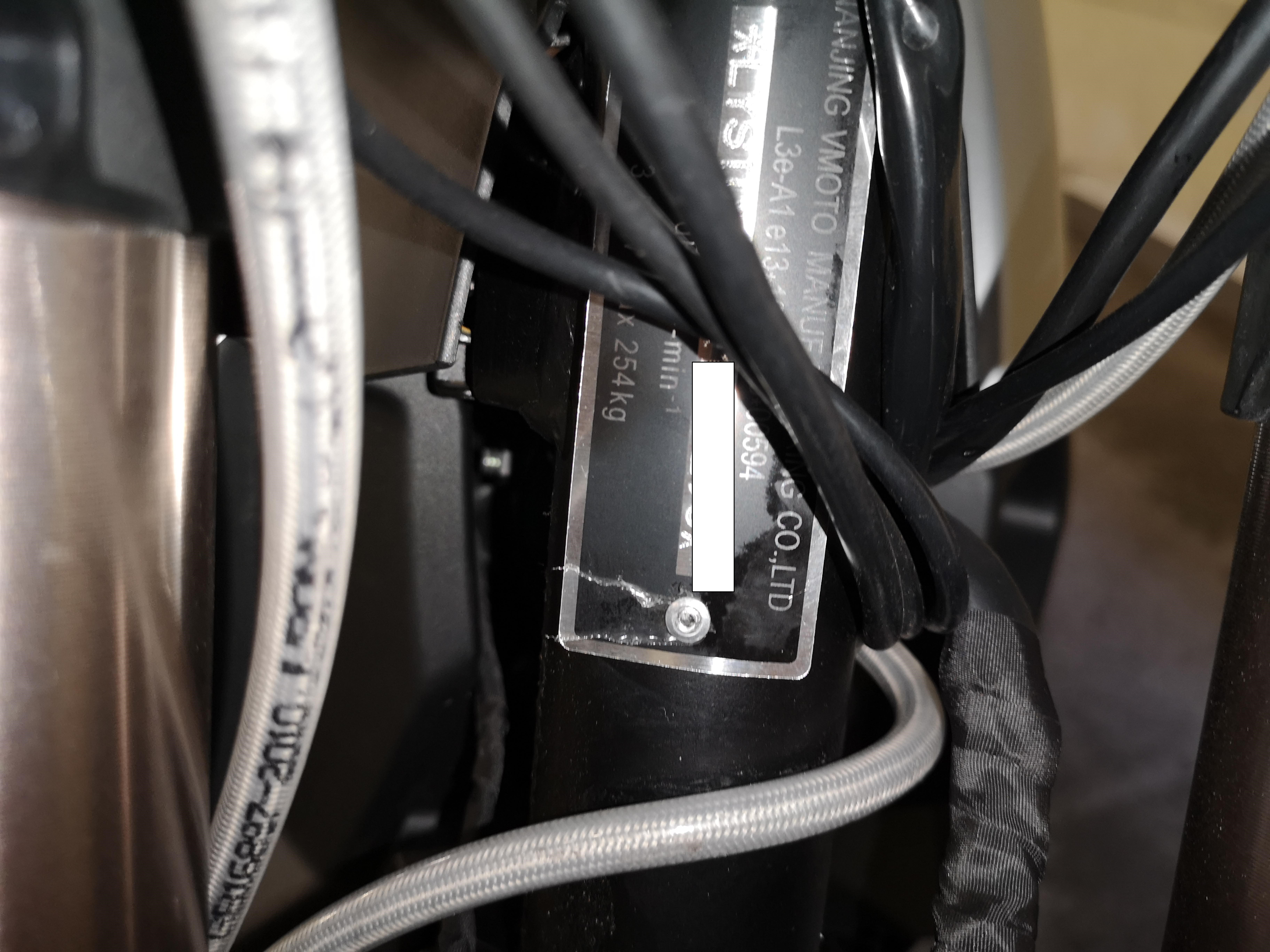 Auch wenn bei mir nocht nichts sichtbar ist, dass die Kabel angefriffen sind, habe ich es präventiv mit KFZ-Klebeband gelöst, welches sehr "kuschelig" zu den Kabeln sein dürfte. Ebenso habe ich das Typenschild mit Kabelbindern an den Rahmen rangedrückt.