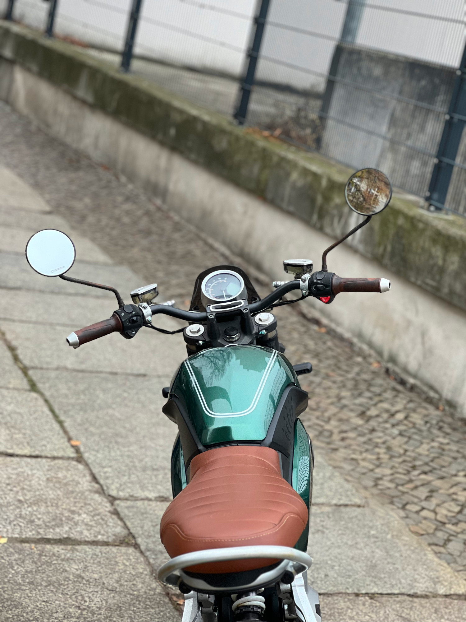 Hatte mir dann auch kurzem Überlegen den Lenker der Max bestellt und montiert. Sieht fantastisch aus, der Tankdeckel knallt nicht mehr an den Taster für die Hupe beim Öffnen und es fährt sich deutlich direkter, irgendwie stabiler.