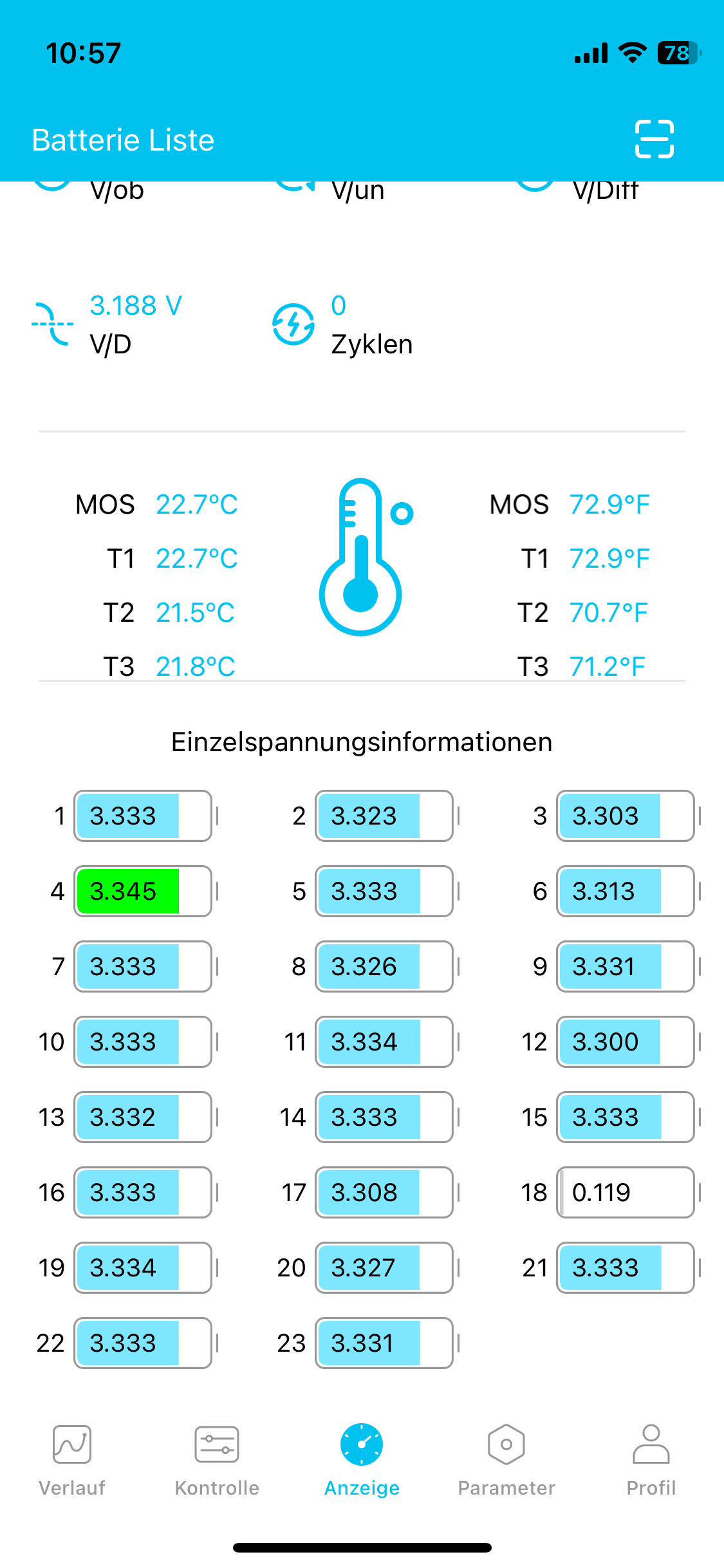 Und noch ein Akku-Block wurde mit dem XiaoXiang-BMS geliefert, und wieder ist ein String beschädigt worden: