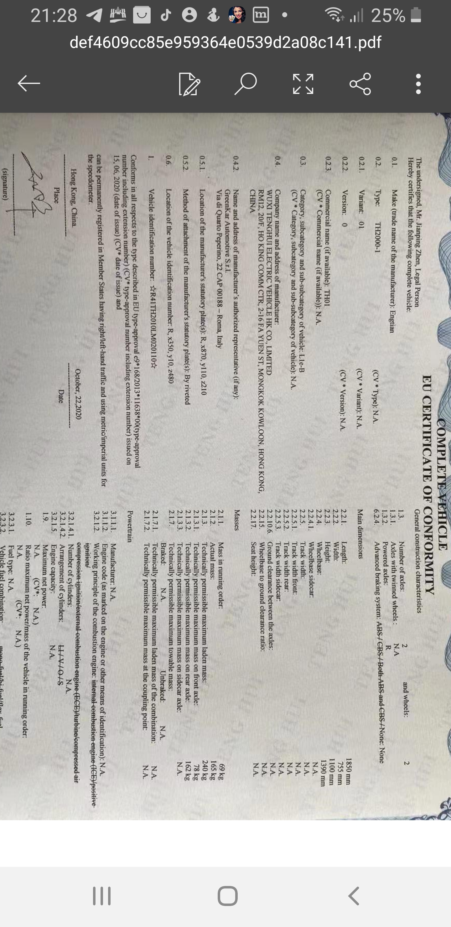 A4 Prospekte mit Grund Daten. War dann bei einem TÜV in Berlin. Mein Bekannter, er hat zu dem Zertifikat gesagt, so weit passt alles. Sein Bekannter arbeitet bei Zulassungsstelle, auch gleiche Meinung. Motorrad gleiche Art habe ich angeschaut. Passt so weit. Das das China Modell ist, ist klar. Jetzt zu verschiffung. Von Schanhei nach Hamburg + Motorrad + Zusätzliche Batarie = 1950,- . Auf die gesamt Summe kommen 6% Zoll. Wieder auf die gesamt Summe 19% Mehrwertsteuer. Dann sind wir weit unter 3000,- . Von Hamburg nach Berlin nicht mitberechnet. Es ist aber das kleinste Übel. Also wenn ich was vergessen haben soll, bitte korrigiert mich. Ich kann ein Modell des Motorrads zeigen, was schlechter aussieht. Auch aus China kommt. 1. Netto Onlineshop 3,400,-. Ja, mit Garantie. Schlechte Ausstattung und Reichweite. 2. eBay Kleinanzeigen 6,400,- schlechteres Modell meines Erachtens. Aussehen und Ausstattung. Reichweite. Verglichen mit Aliexpress - beide gibts dort, aber ab 10 St. Auch günstiger als meine Variante. Die kosten dort 700 - 800,- + verschiffung 250 Dollar. Fazit. Die machen aus dem gleichen Scheiß über 300% Gewinn.