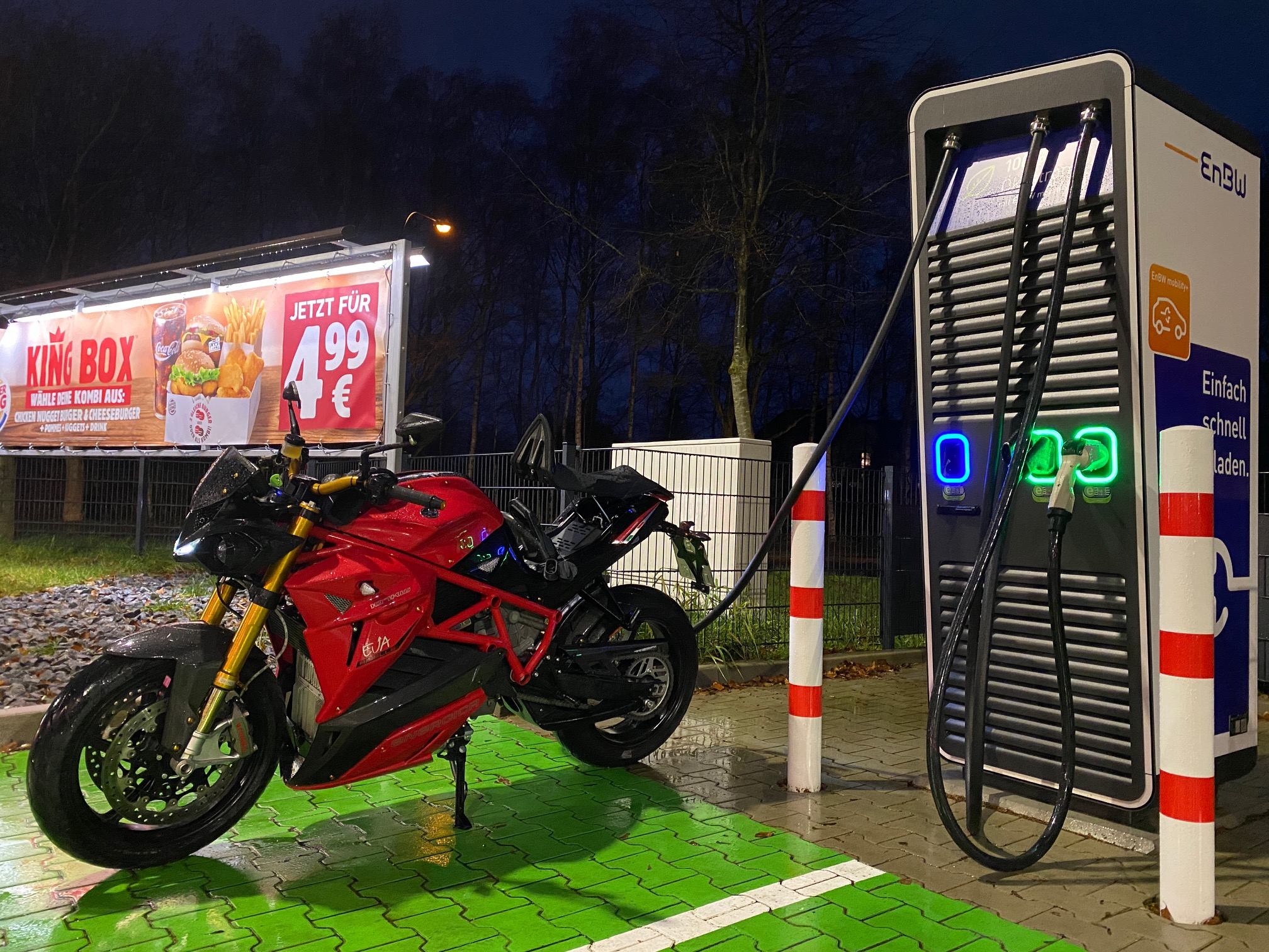 Andererseits ist die Energica schnellladefähig und das darf man nicht unterschätzen. Wenn man 3 - 4 Stunden zum Aufladen braucht, sind längere Strecken einfach keine Option.