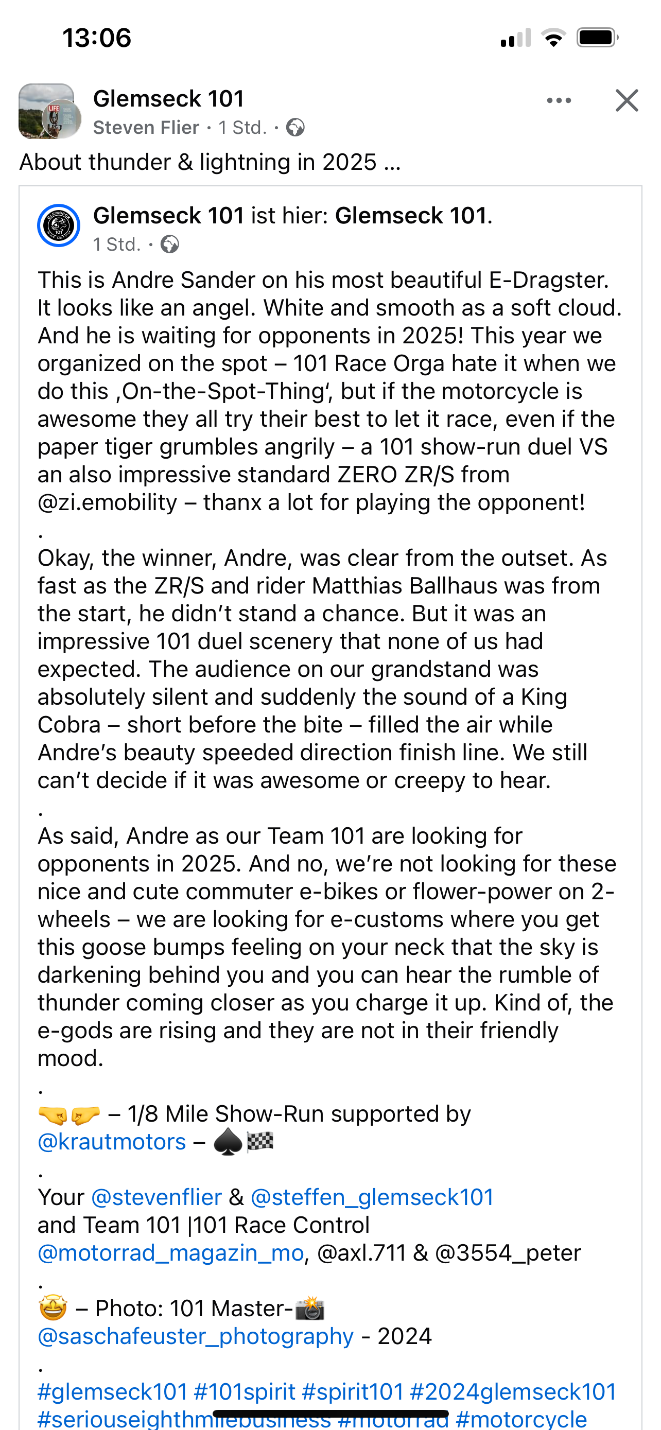 - Roller: Zero S 11kW ZF10.5/erider Thunder (R.I.P)
