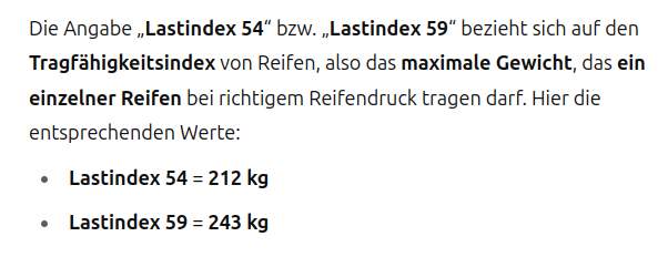 Aber selbst Nova-Motors bietet als Ersatz ja nur Reifen mit 54er Tragfähigkeitsindex an:
