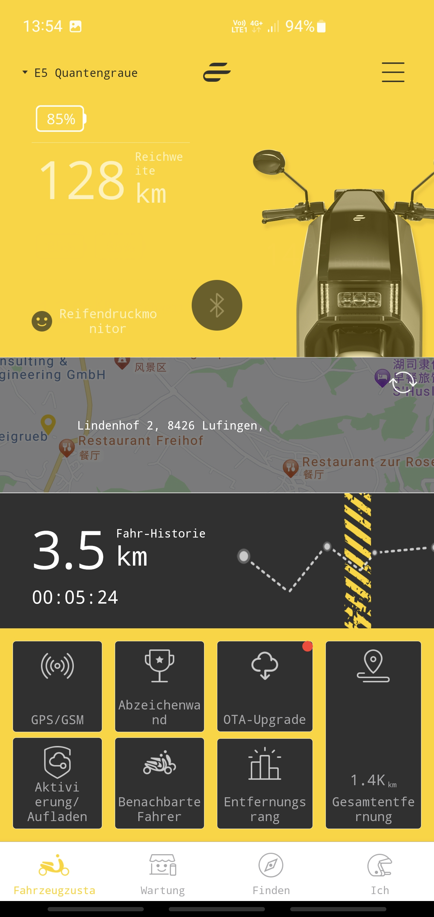 Ich vermute die Weitergabe des Status vom ECOOTER E5 an den Server braucht ein wenig.