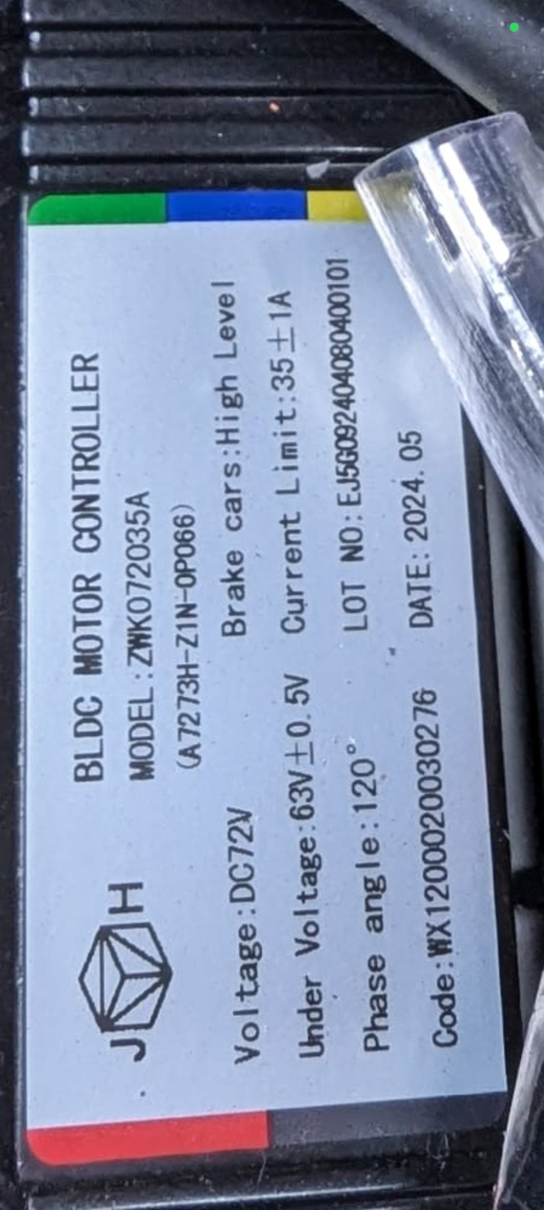 BLDC MOTOR CONTROLLERMODEL:ZWK072035A(A7273H-Z1N-0P066)Voltage:DC72NBrake cars:High Level Under Voltage:63V±0.5V Current Limit:35±1A Phase angle:120°