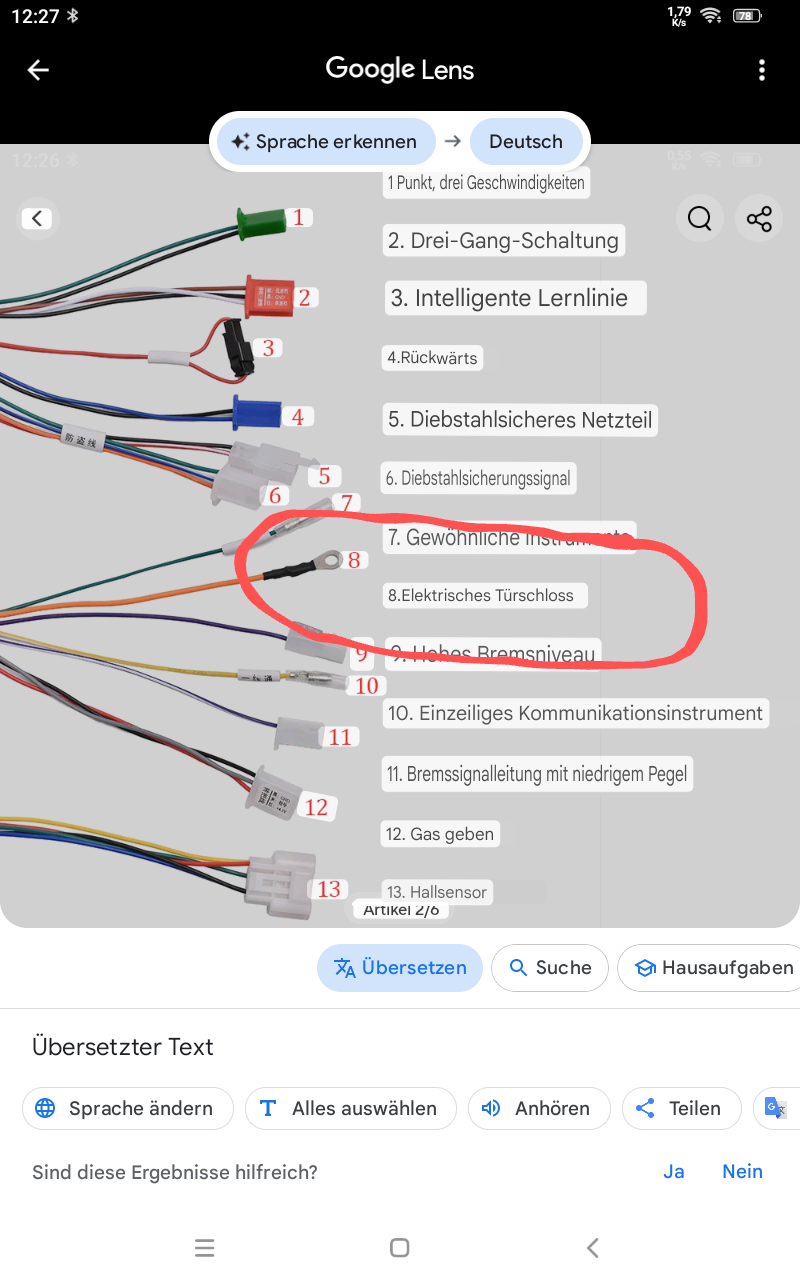 Genau, mit E-Lock (merkwürdigerweise mit elektrischem Türschloss übersetzt) ist der Anschluss zum Zündschloss gemeint.