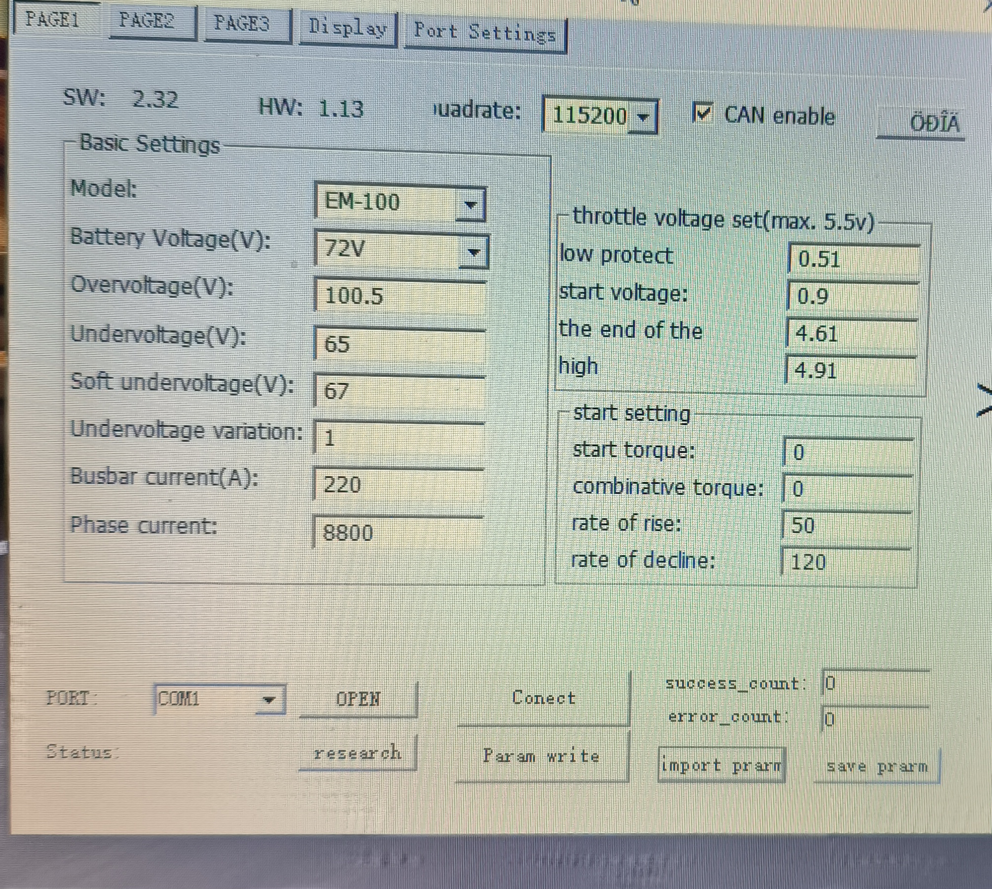 Die Strombegrenzung bei busbar current funktioniert zumindest bei meinem VOTOL nicht. Da wird nur die Einstellung "Current-Limitting" vom Sport/Boost-Mode übernommen, wo bei Dir 220 Ampere stehen. Könnte etwas hoch sein, 220 Ampere für den Motor.