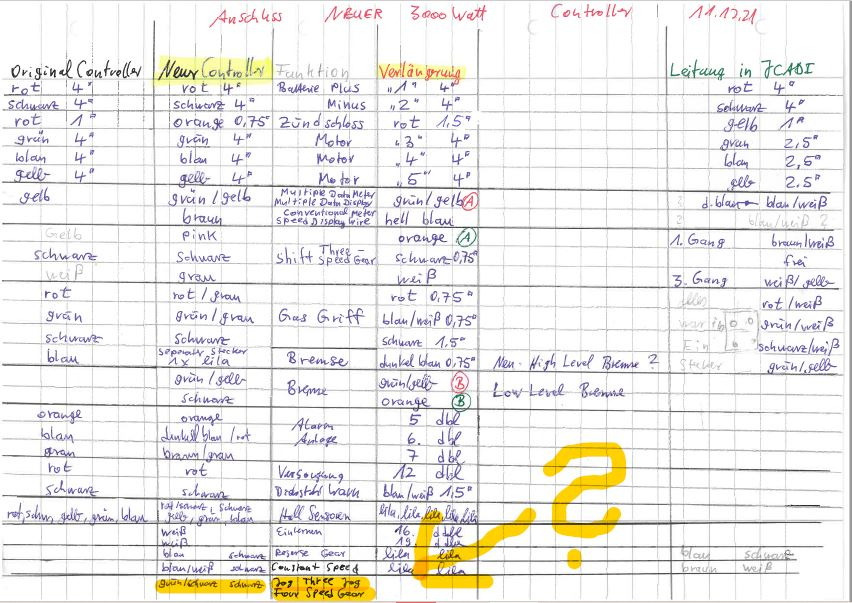 Hallo, ich habe mir inzwischen einen 2. Roller gegönnt, JCADI - zu 95% baugleich zu Econelo DTR ... Der hat ebenfalls einen Bosch Motor mit 10" und 2,1KW, aber die Hall Sensoren liegen im 60° Winkel verbaut :-( ... Dafür hat er einen 60V und 32AH Akku :-) ... Die Beschleunigung war bescheiden da die Chinesen ihn nur einen No Name Controller mit ca. 800W Leistung (ohne Programmiermöglichkeit) spendiert hatten. Auch die Endgeschwindigkeit war deutlich unter 40km/h ... Ich habe den Controller durch einen 3000W Controller mit 24 Mosfets ersetzt. Der kann wohl keine Sinuswelle, hat jetzt aber enorm viel Drehmoment, der Tacho wird einwandfrei angesteuert (wenn er auch ebenso zu viel Geschwindigkeit anzeigt) ist lauter im Motor Geräusch - macht sehr viel Spaß, läuft aber nur 38km/h schnell. Leider lässt sich der Controller nicht programmieren. Mit dem 3000W Controller dreht das Hinterrad im Stand mit angeschlossenen Hall Sensoren im 3. Gang 575 U/min - beim Original Econelo mit Lingbo Steuergerät sind es 604 U/min, mein Econelo kommt auf 42-43 km/h laut GPS. Ich überlege mir im Frühjahr für den JCADI Roller auch einen Programmierbaren Controller zuzulegen, der dann auch 45km/h schafft und die 2,1KW dann auch auf die Straße bringt, ohne zu überhitzen ... Beim Lingbo, so habe ich gelesen, sollte man auch mal die Temperatur des Controllers im Auge behalten ... Ich habe im Anhang mal einige Dateien beigefügt, die ich in vielen Monaten mal gesammelt habe, vlt. hift das Ein oder Andere weiter ... Ebenso habe ich ein Foto von meinen neuen 3000W Controller beigefügt, der leider nur ca. 38km/h schnell fährt, aber viele Drehmoment hat und nur ca. 100€ gekostet hat ... Viele Grüße