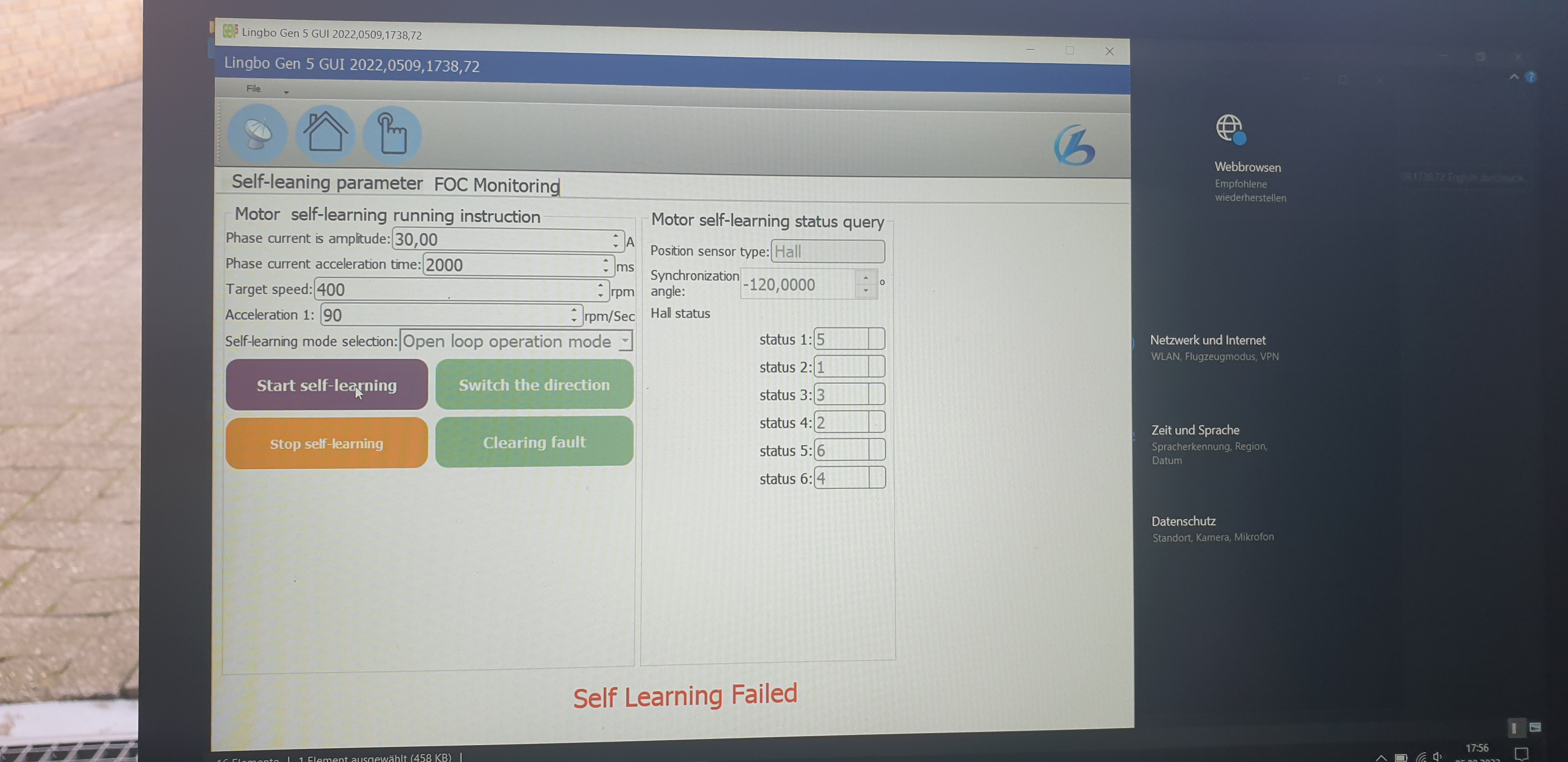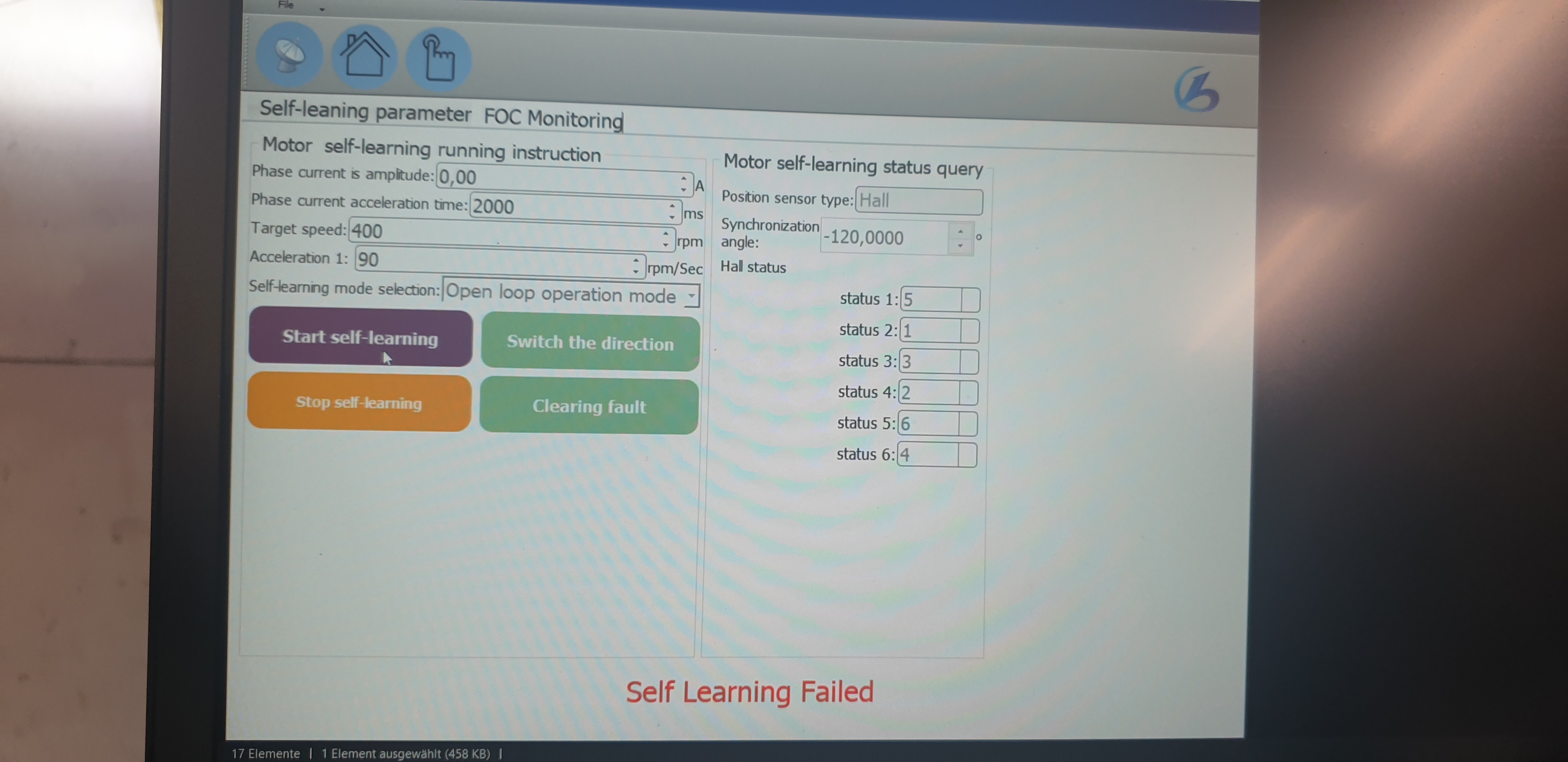 6. Motor Parameter: "Phase Shift angle of position sensor" habe ich von -60 auf -120° umgestellt ( Habe ich hier im Forum mal gelesen)