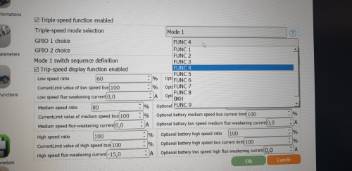 + Den Gangwahlschalter wollte ich ursprünglich in den Stufen 1, 2, 3 anschließen - Programmieren - und auch über Mode 1, 2, 3 gerne in der Anzeige haben. Ist mir nicht gelungen. Ich habe die Eingänge L und H in allen möglichen Kombinationen beschaltet sowie die Software hierzu in vielen Kombis. durchprobiert ... ging nicht ... also habe ich jetzt "Mode 2" für Low Speed und keine Mode Anzeige " " für High Speed. Damit bin ich zudrieden ...