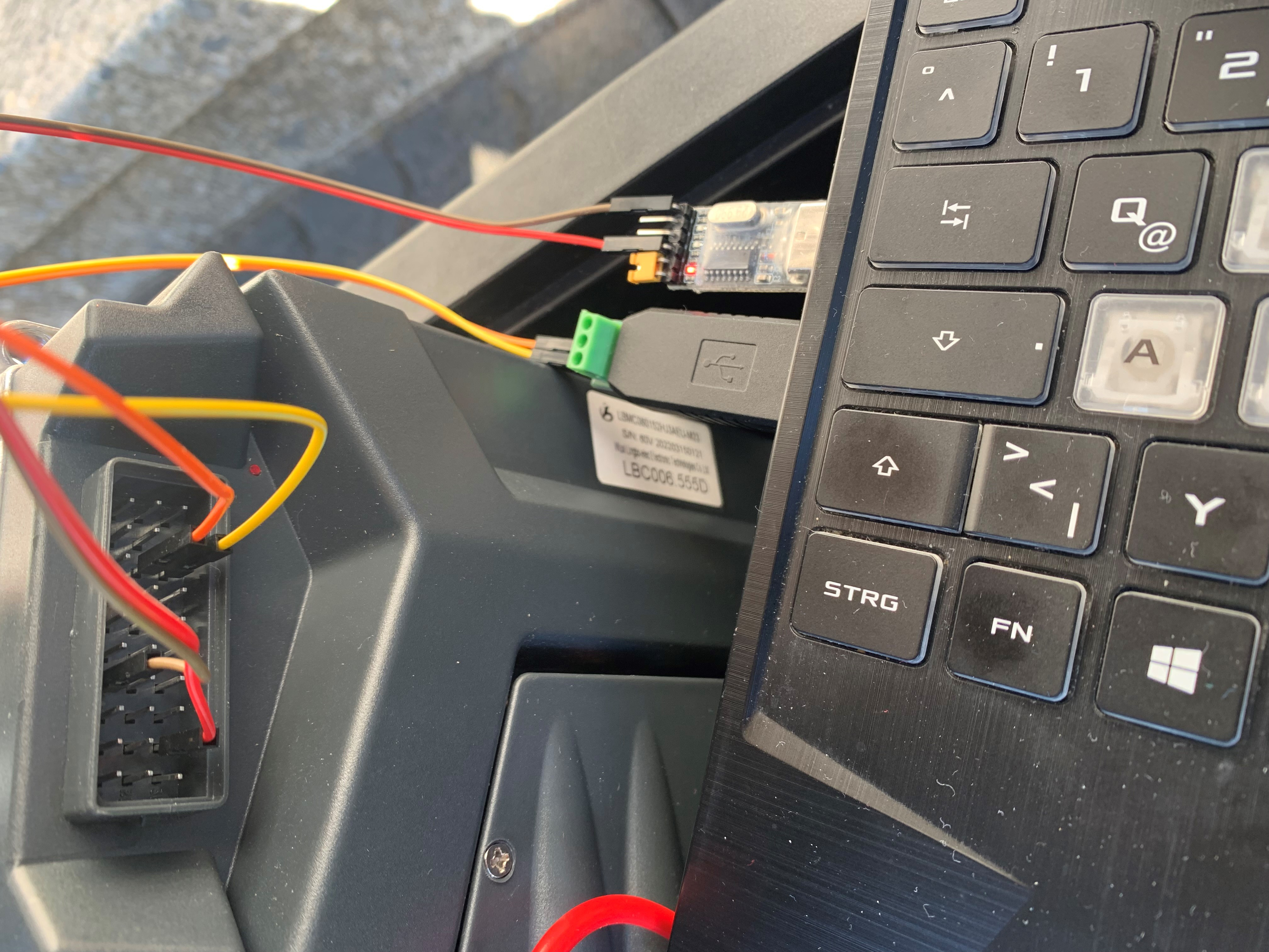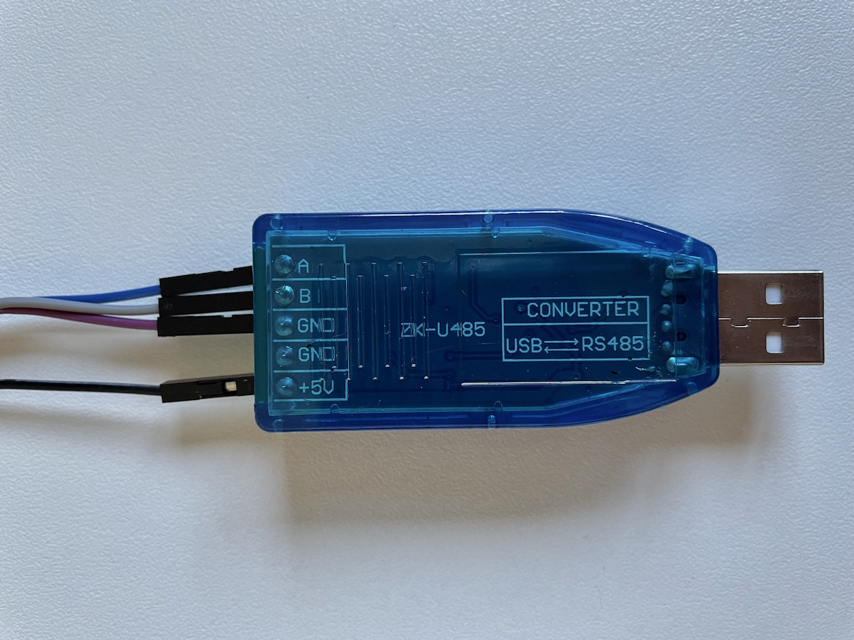 Die Pins 13 und 23 mit USB zu RS485 (A an Tx B an RX) verbinden. Siehe Bilder
