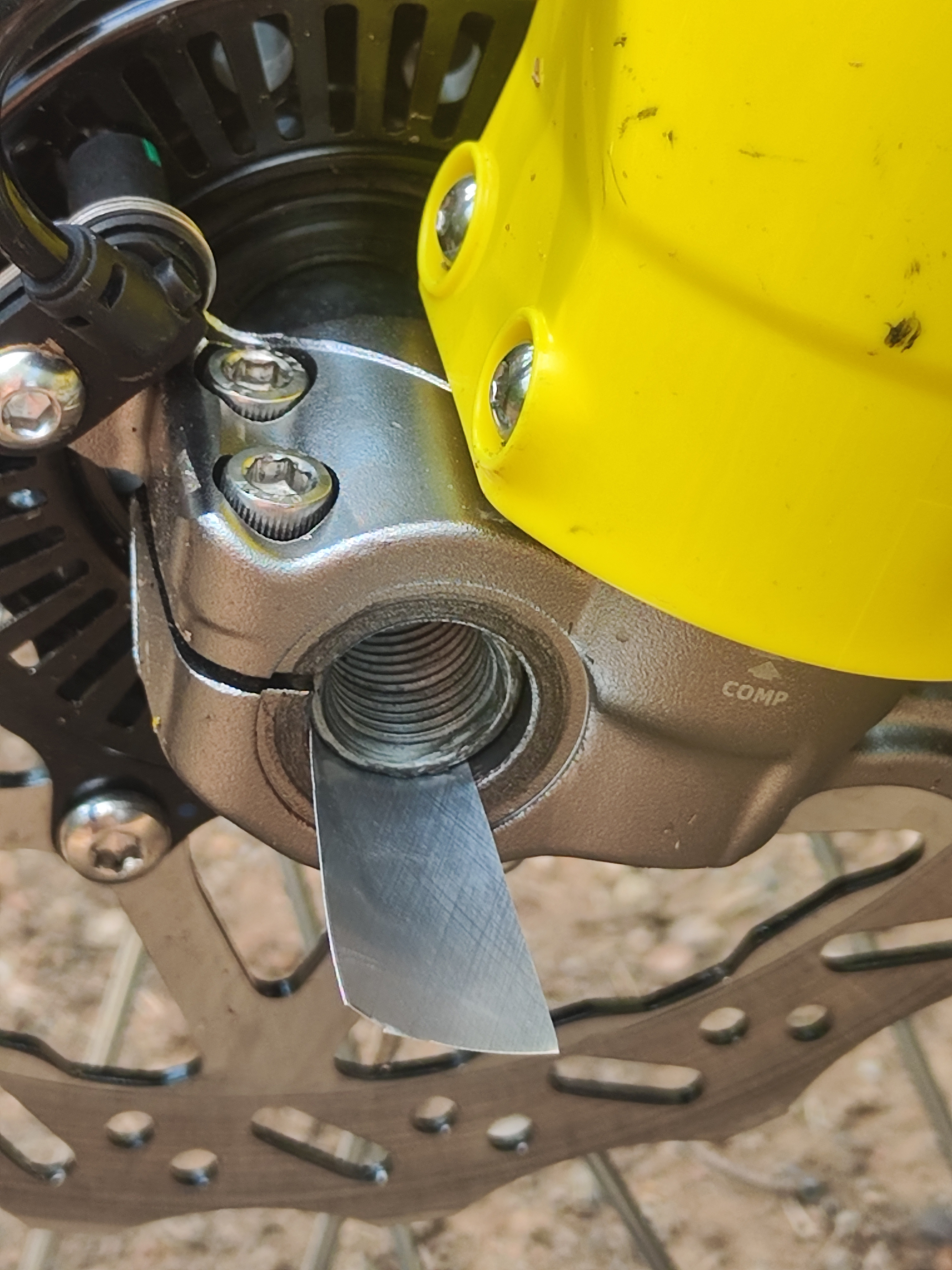 Der Händler hat empfohlen die Achsklemmung fester anzuziehen. Dabei werden die Gabelfäuste aber deutlich zusammengezogen und ich habe die Befürchtung das diese reißen können.