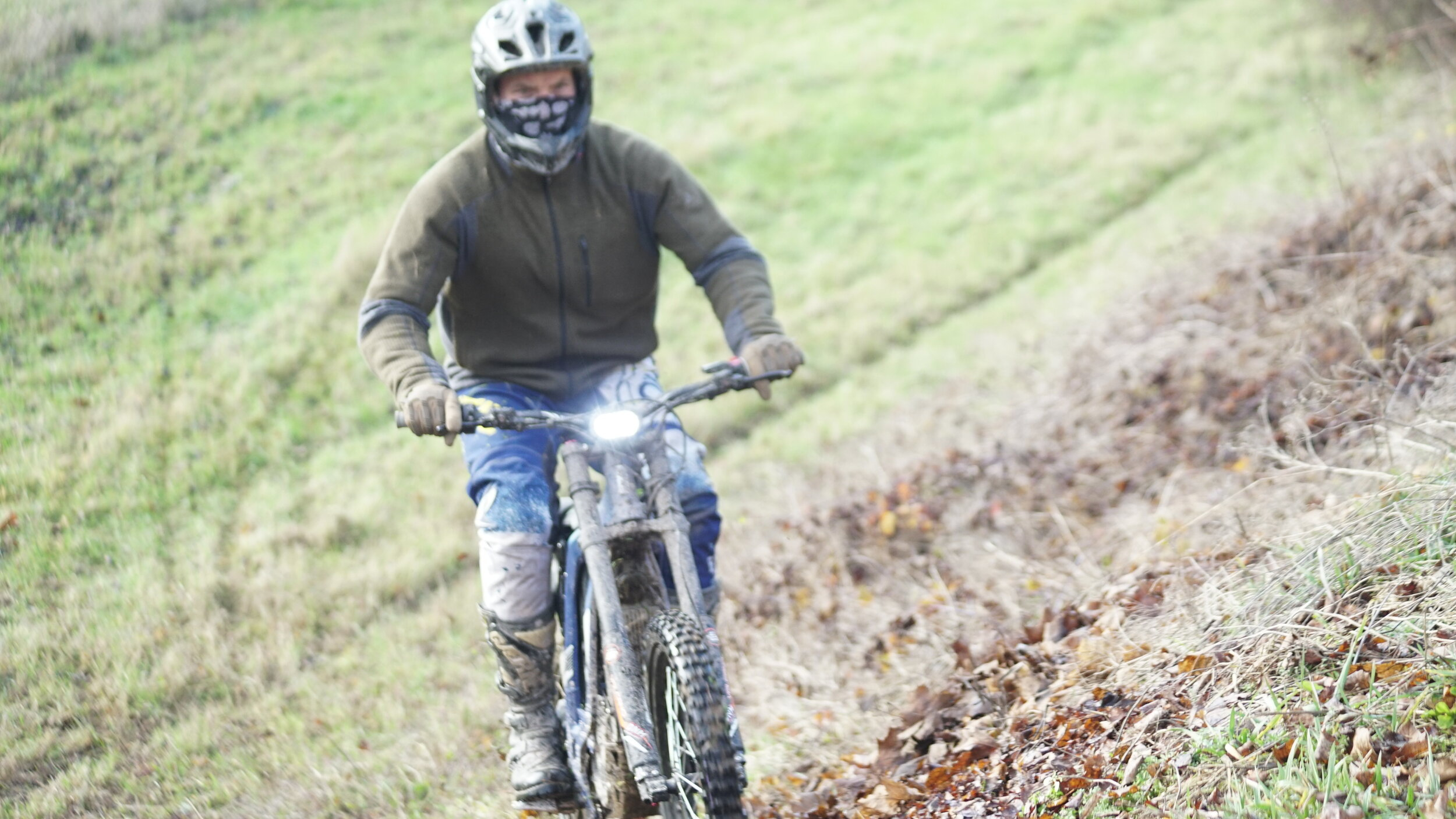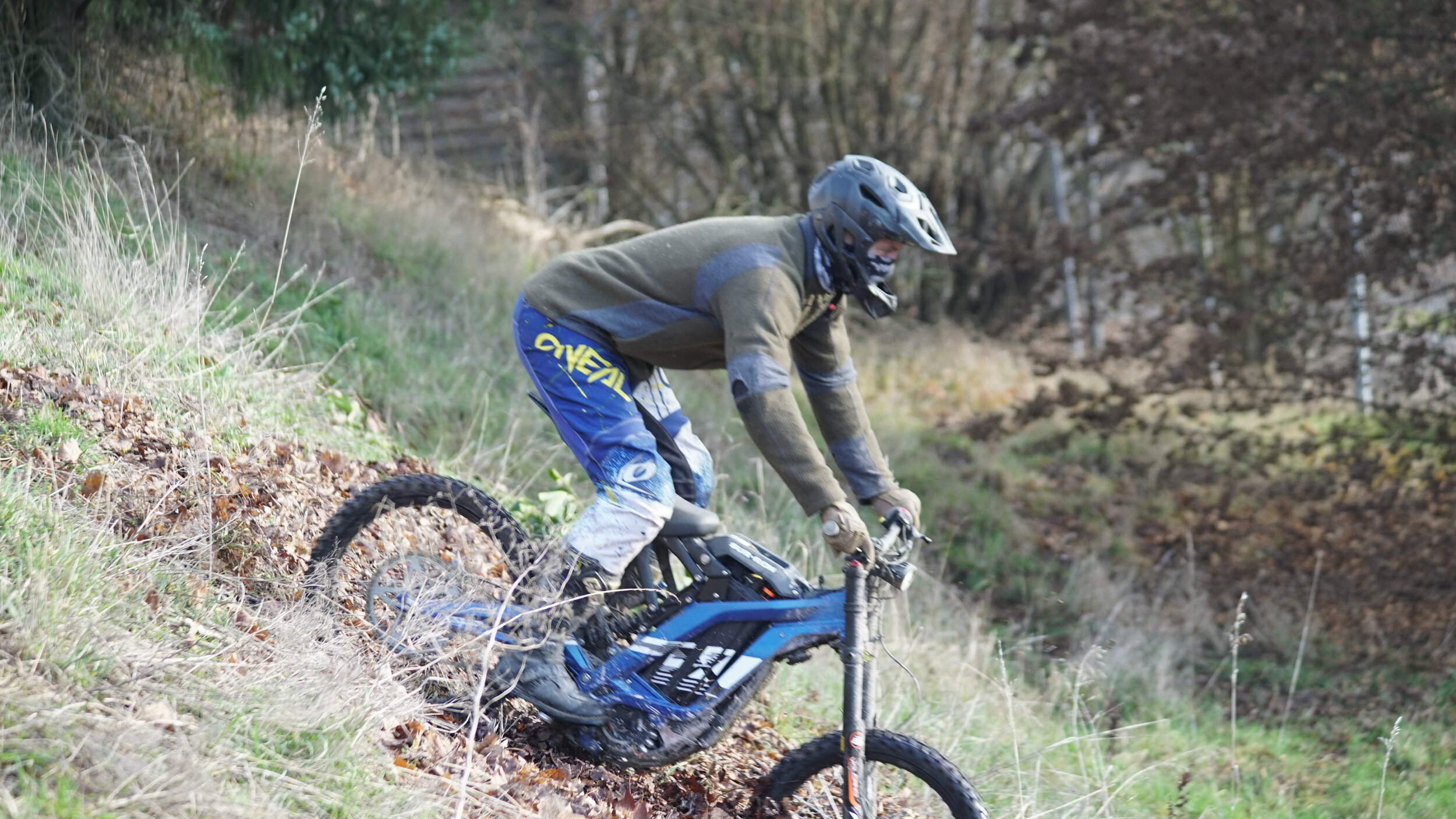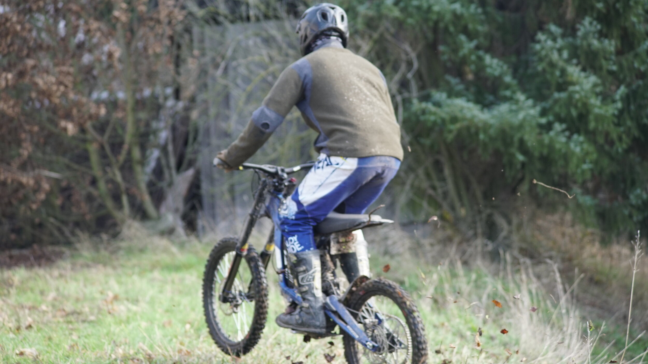 Um Durchschläge zu vermeiden fahre ich konstant mit 2bar. Sicher hätte ich mit weniger Druck mehr Grip, aber die Surron ist jetzt auch keine Leistungsschwein. Daher gehe ich lieber auf Nummer sicher. Und so kommt der ein oder andere Drift früher :-D