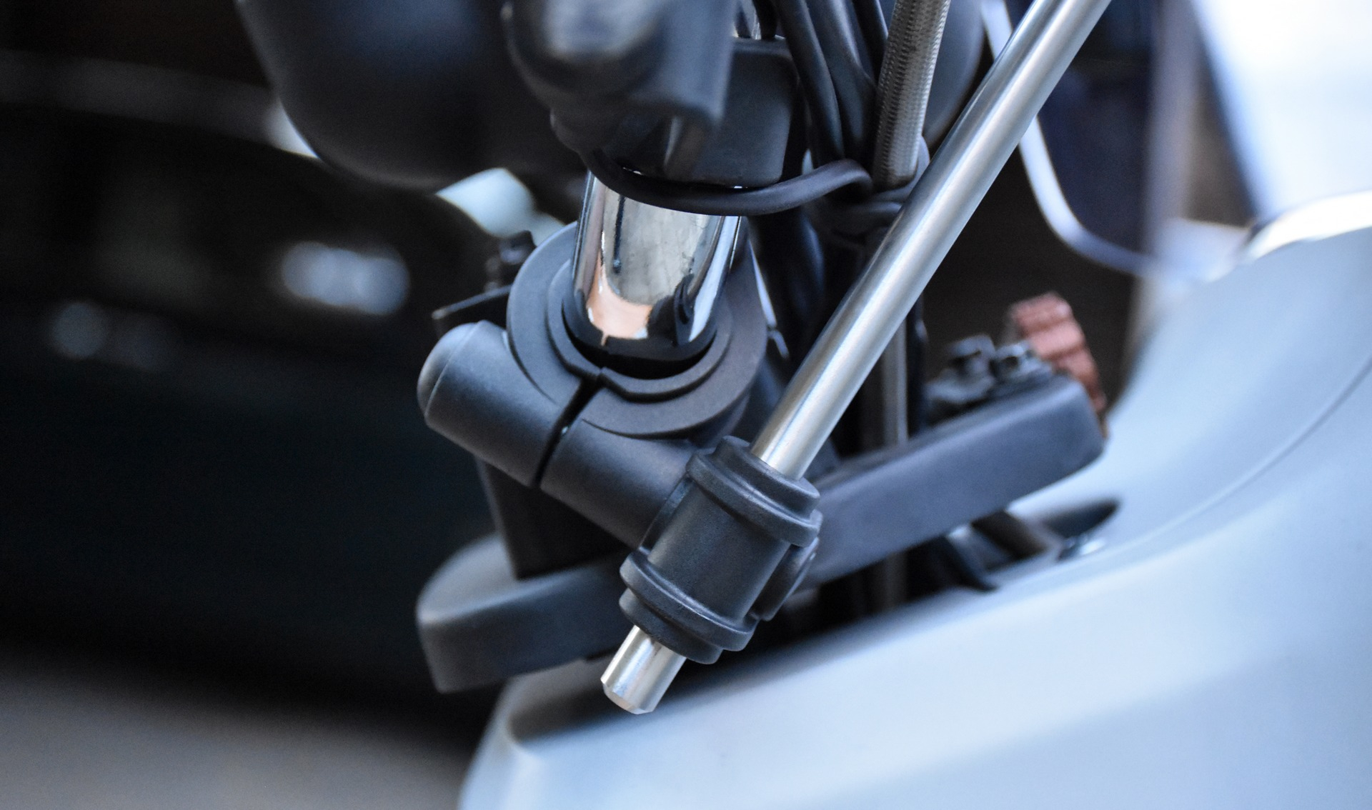 da die Klemmkraft der kugelförmigen Aufnahmen am Windschild doch eher überschaubar ist.