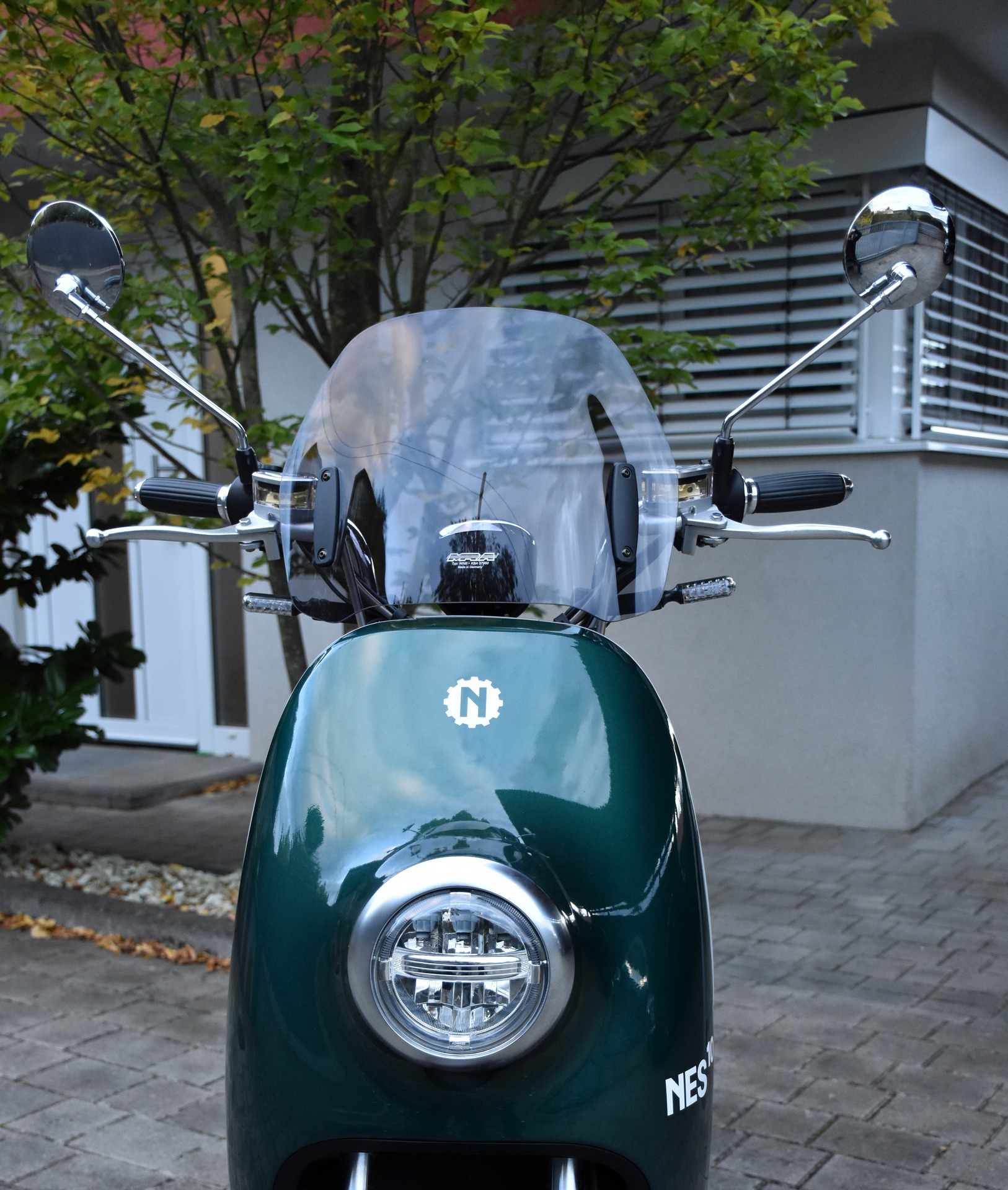 Das Windschild fügt sich recht harmonisch am NES ein und das fahren bei hohen Geschwindigkeiten ist deutlich angenehmer, da der Winddruck auf Oberkörper und Helm verringert wird.