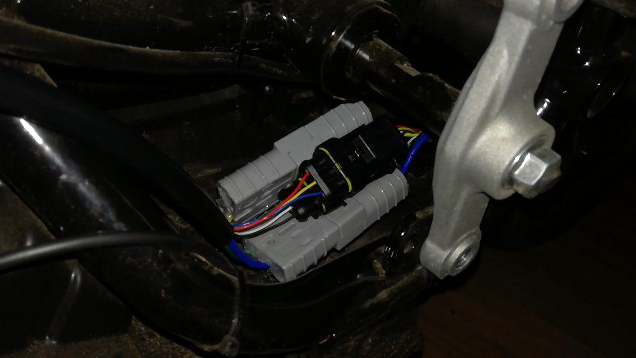- Motorkabel trennen und Stecker zwischen (= einfacher Ausbau des Hinterrades)