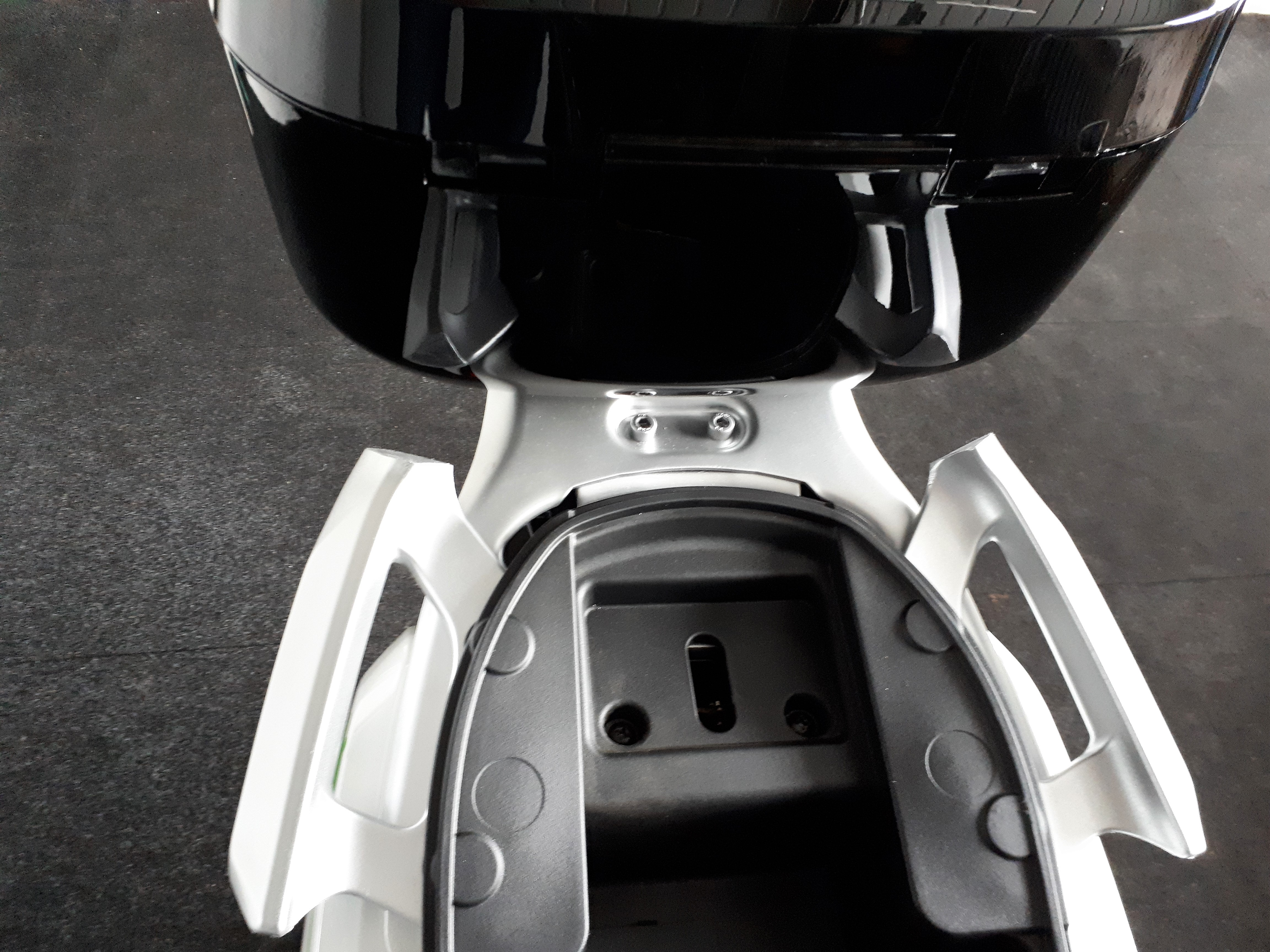 2) Wie befestigt man die Platte des Top Case an der Basis Platte von Niu? Es passen komischerweise nur zwei Schreiben durch die Platte des Top Case in die Niu Basis Platte. Dies erscheint mir etwas instabil.