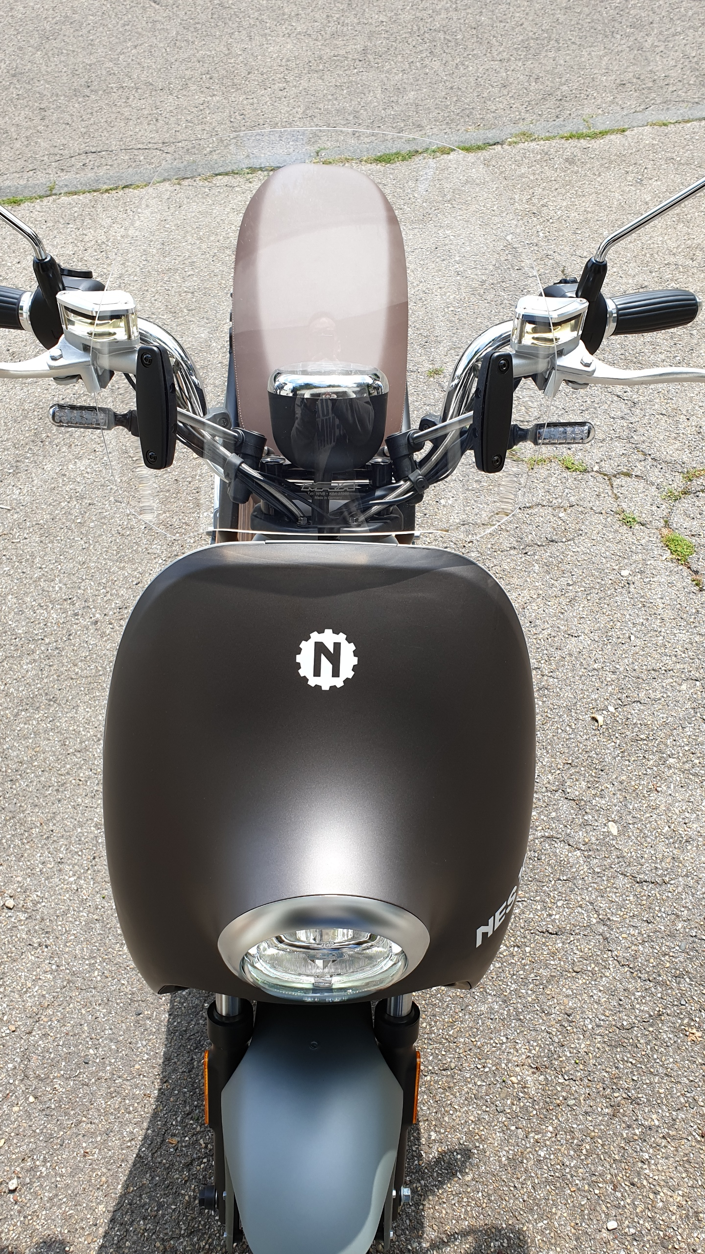 Das Windschild fügt sich recht harmonisch am NES ein und das fahren bei hohen Geschwindigkeiten ist deutlich angenehmer, da der Winddruck auf Oberkörper und Helm verringert wird.