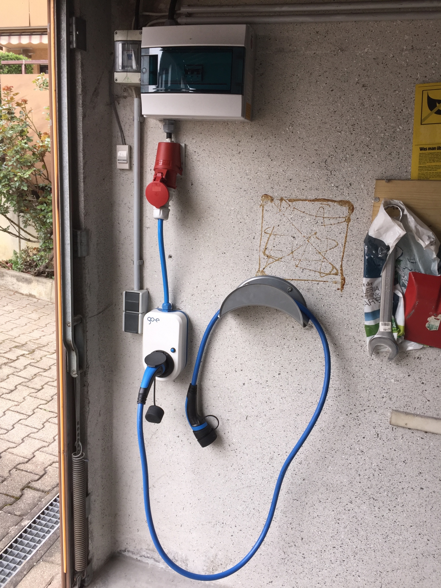 Seite heute ist die Garage bereit für kommende elektrische Schandtaten, inklusive 2,5m 32A Typ2 Ladekabel:
