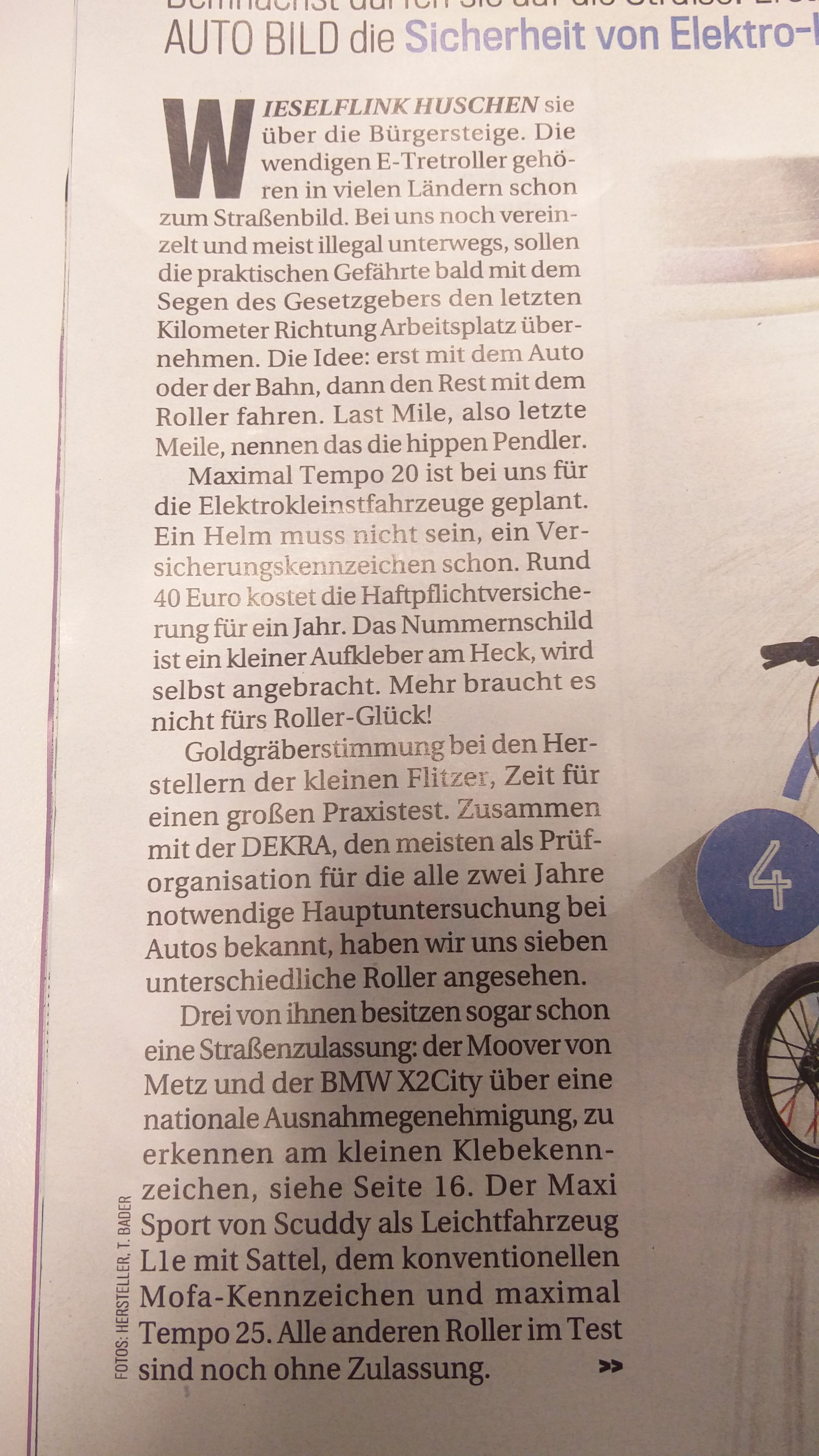Ja, es tut mir wahnsinnig leid, dass ich den Link falsch deklariert habe. Natürlich ist es kein Link zu Ausnahmeregelung, sondern lediglich ein Link, welcher dieses Thema anspricht, wie es wohl kommen wird.vsm hat geschrieben: ↑Mo 29. Apr 2019, 09:06Ich habe den Link entfernt. Grundsätzlich habe ich nichts gegen Links auf den EScooter.Blog, dann aber bitte unter den korrekten Voraussetzungen. Hinter dem Link verbirgt sich weder eine Abschrift irgendeiner Ausnahmeregelung, noch dem Entwurf der eKFV. Einzig sichere Quelle für beides bleibt das BMVI.