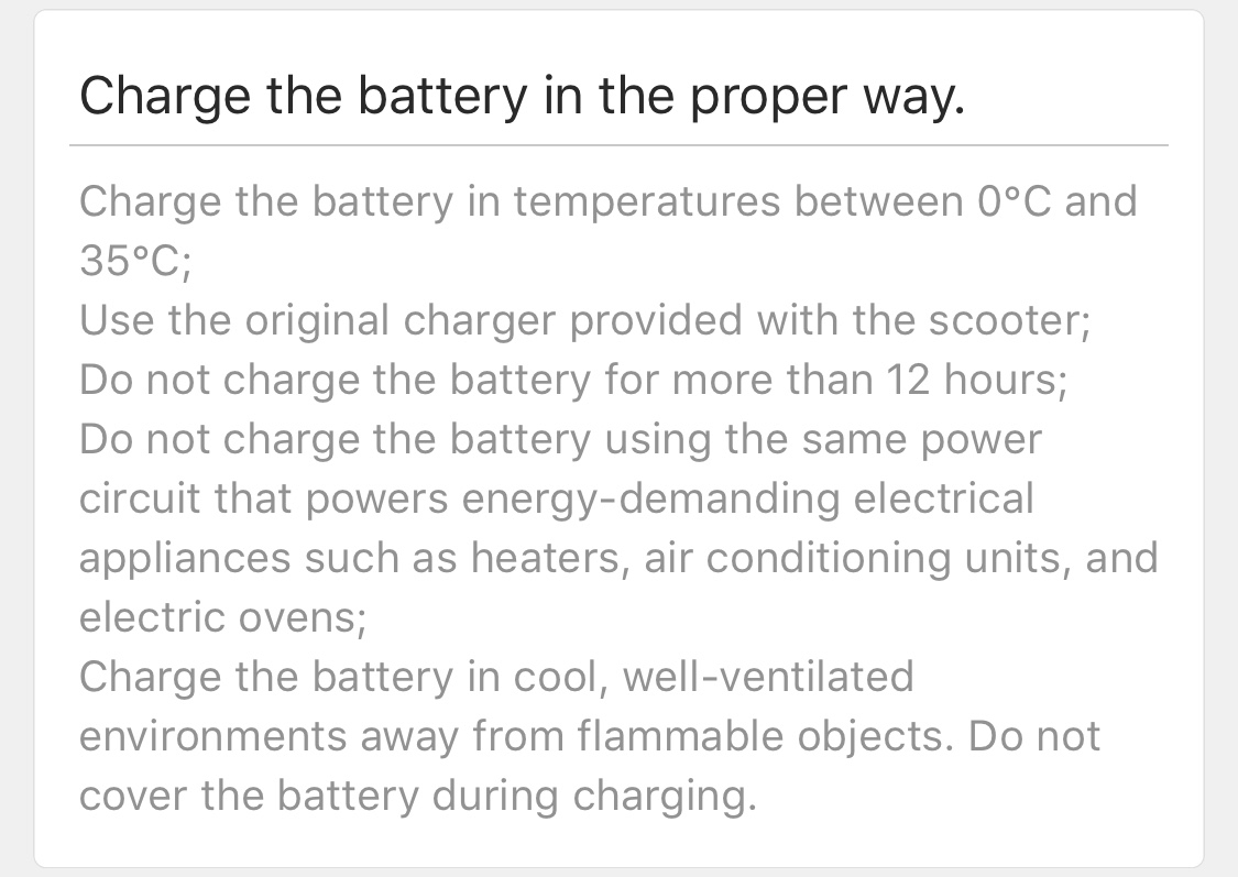 Das ist falsch. Abbrechen des Ladevorgangs erzeugt keinen Schaden. Und wenn auch NIU schreibt, dass ein Optimum zwischen 20%-80% liegt, dann ist das sehr wohl eine Empfehlung den Ladevorgang auch abzubrechen.