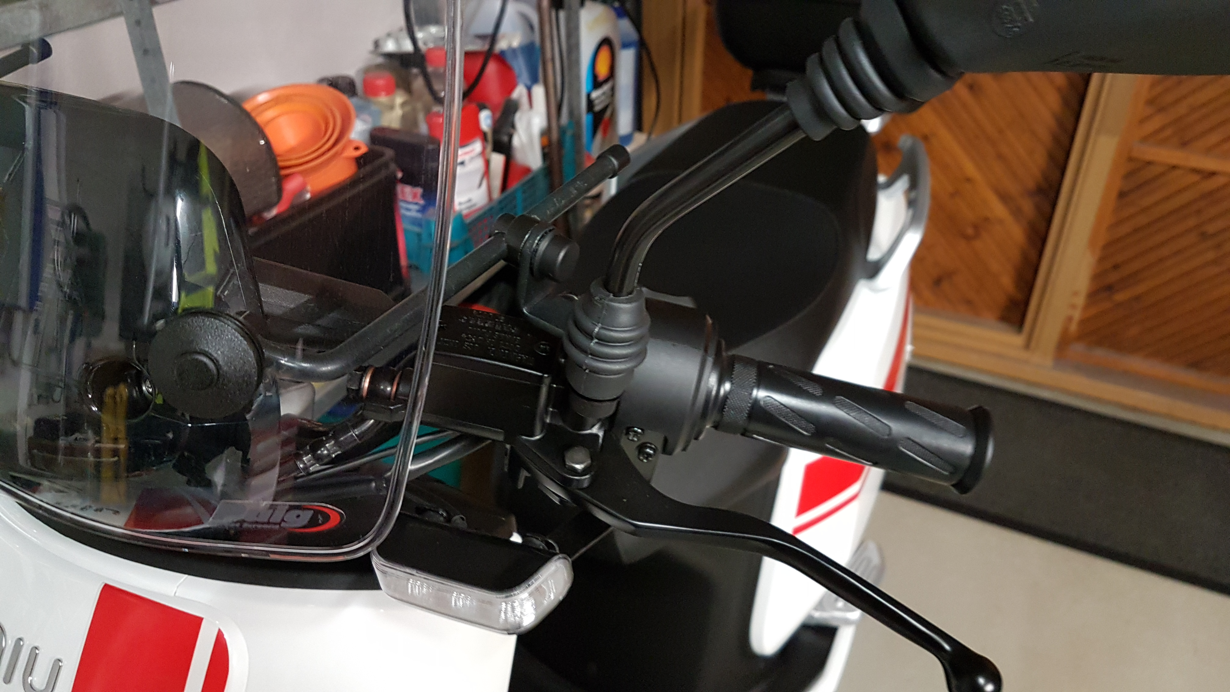 Allerdings wird wohl der Lenker durch diese Klammern ziemlich sicher zerkratzt. Ich wollte zuerst einen kleinen Gummiring zwischen die Klammer und das Lenkerrohr legen aber das ganze ist so eng das ich es schlussendlich aufgegeben habe. Der Komfort des Windschilds war mir in dem Moment wichtiger als ein makelloser Lenker.