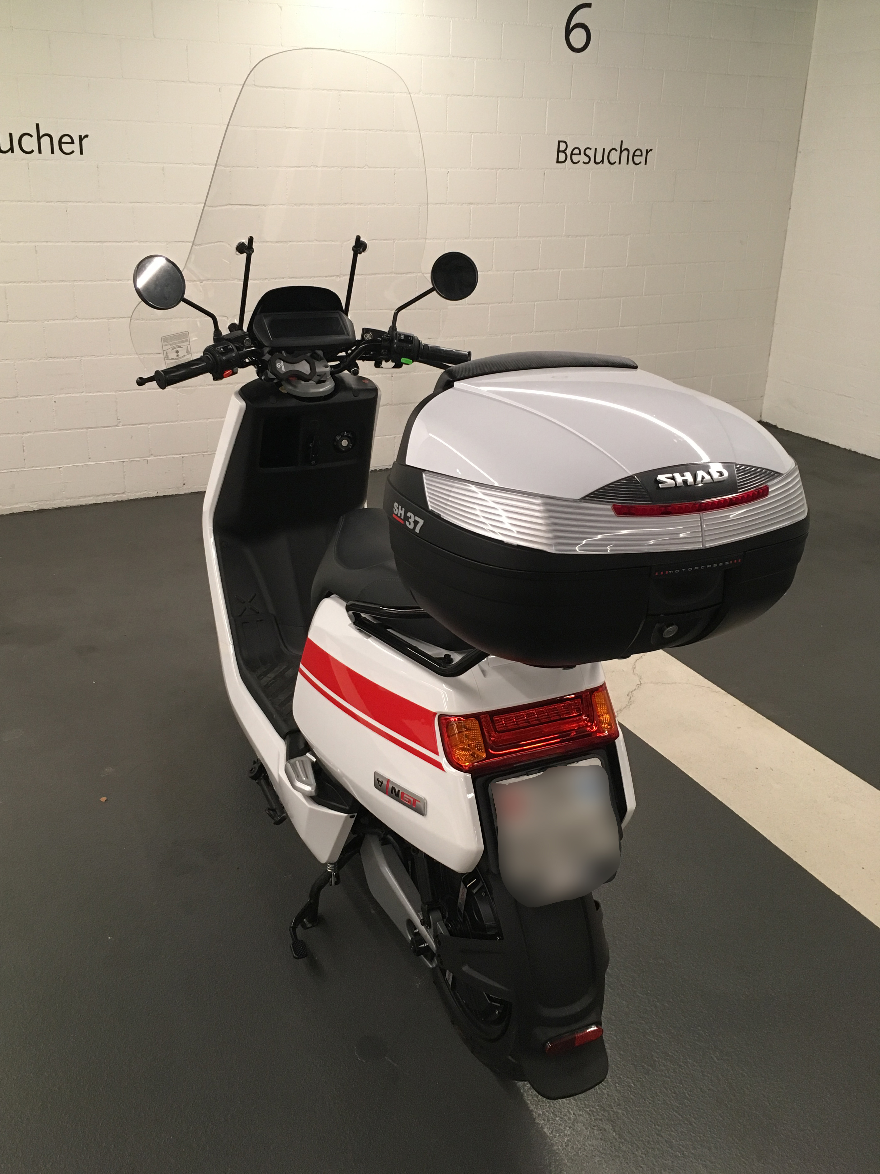 Hallo liebe Niu-Fahrer. Ich bin seit 2 Wochen Besitzer von einem NGT und bin auch schon seit ein paar Wochen fleissiger Leser in diesem Forum. Bevor ich zu meinem Thema komme, möchte ich mich kurz Vorstellen: Ich bin 41 Jahre alt und wohne in einer Schweizer "Grossstadt". Ich fahre seit 20 Jahren Motorrad und seit 10 Jahren Roller. Bei meinem NGT habe ich bereits einen stabileren Gepäckträger montiert und darauf eine 39L Box von Shab installiert.