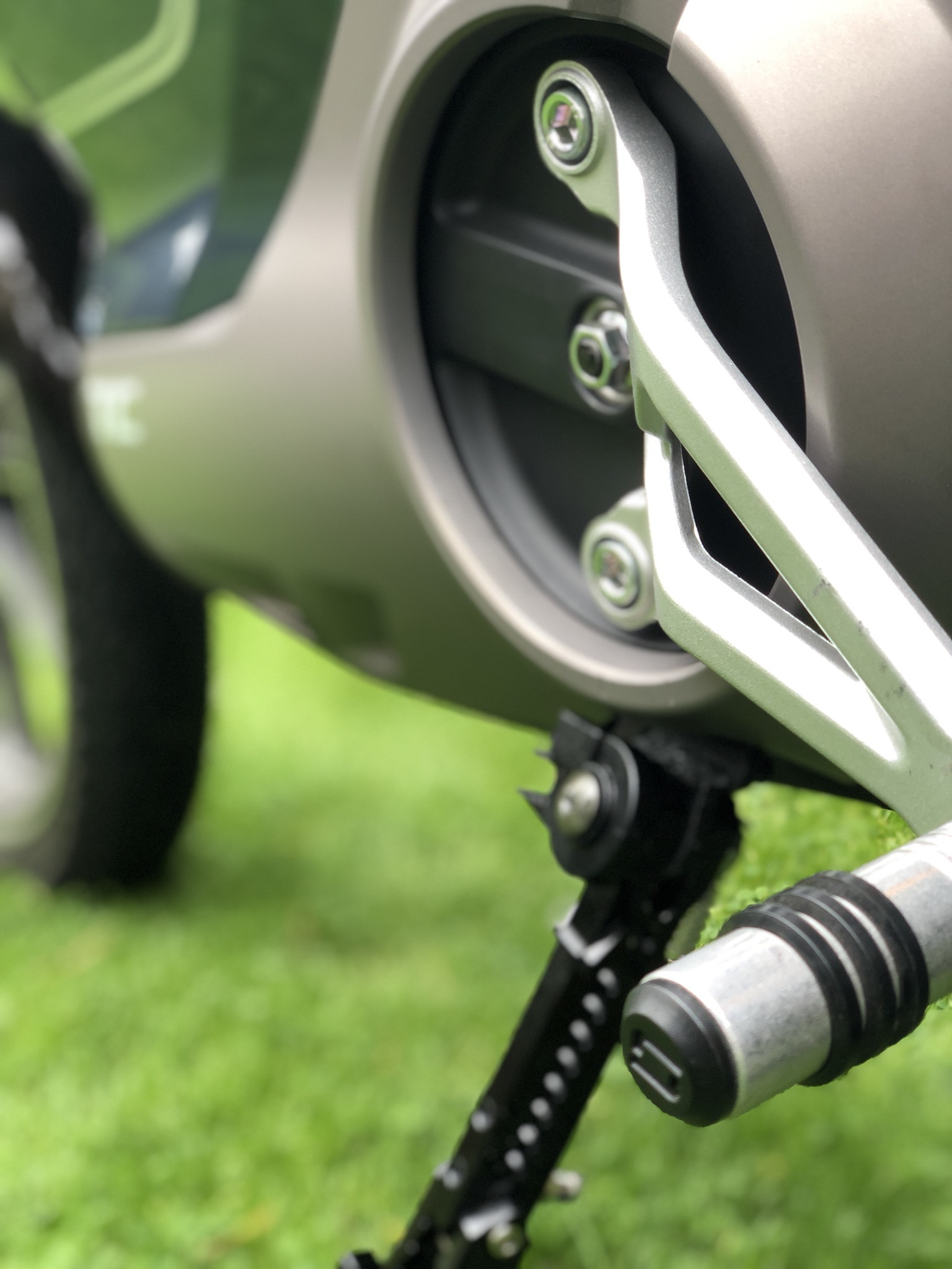 Mit dem Originalständer geht es auch - sie steht dann aber schon schräg.