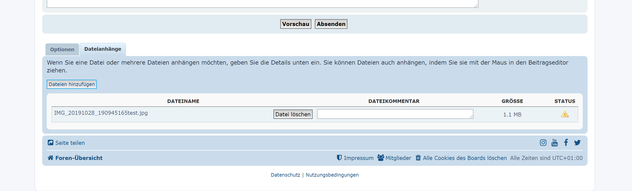 Danke, ist angekommen, ich konnte das Problem nachstellen und habe auch den Täter bereits ermittelt. Die Foren-Software nutzt diese Bibliothek um die Größe von (hochgeladenen) Bildern zu ermitteln. Aufgrund eines dokumentierten Bugs scheitert die aktuell in phpBB verwendete Version an übergroßen JPG-Headern zu scheitern. Ich habe nun dafür gesorgt, dass bei einem Scheitern der Bibliothek ein zweiter Anlauf mit PHP-Bordmitteln genommen wird, es sollte also jetzt funktionieren. Beim nächsten Update der Foren-Software ist hoffentlich auch ein Update der Klassen enthalten.Toaster hat geschrieben: ↑Do 21. Nov 2019, 15:25Ein Bild von denen die nicht funzen sollte bei Dir per Mail angekommen sein!vsm hat geschrieben: ↑Do 21. Nov 2019, 10:05Du kannst mir auch gerne mal ein Bild, das nicht funktioniert, per E-Mail an info@elektroroller-forum.de schicken. Dann schaue ich mir mal an, ob ich dem Forum das Verarbeiten dieser Bilder nicht beibringen kann.