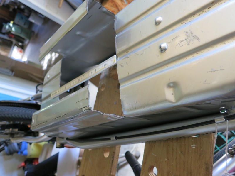 Der 3. Akku kommt zum Teil unten drunter. Das geht auch viel einfacher, mit der Flex 3 Schnitte und den Boden aufgebogen. Mit einer Schiene auf passender Tiefe umgebogen, ein weiteres Blech zugeschnitten, gekantet und mit 4mm Popnieten befestigt. Das Grobe ist damit geschafft.
