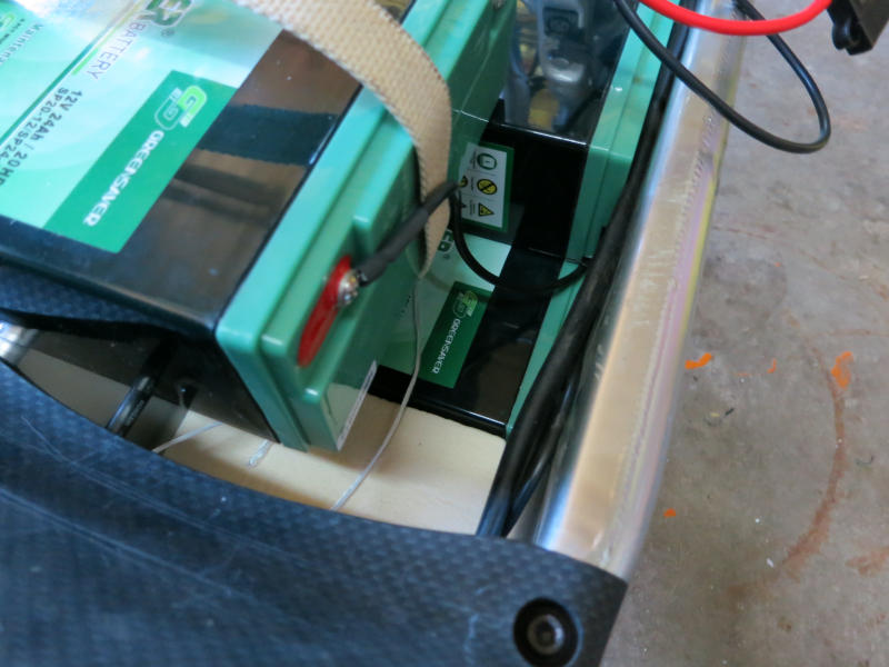 die Greensaver Blei-Silikon-Akkus passten in der Breite nicht wie geplant in den Akkukasten von TP. Zum Versteifen des dünnen Bleches sind Profile eingepresst, die den Akkukasten um die entscheidenden letzten mm verkleinert. Die Akkus muss ich also um 90° drehen. Dadurch sind die 3 Akkus hintereinander so lang, dass sie über das hintere Schwinggelenk reichen würden, also nicht realisierbar.