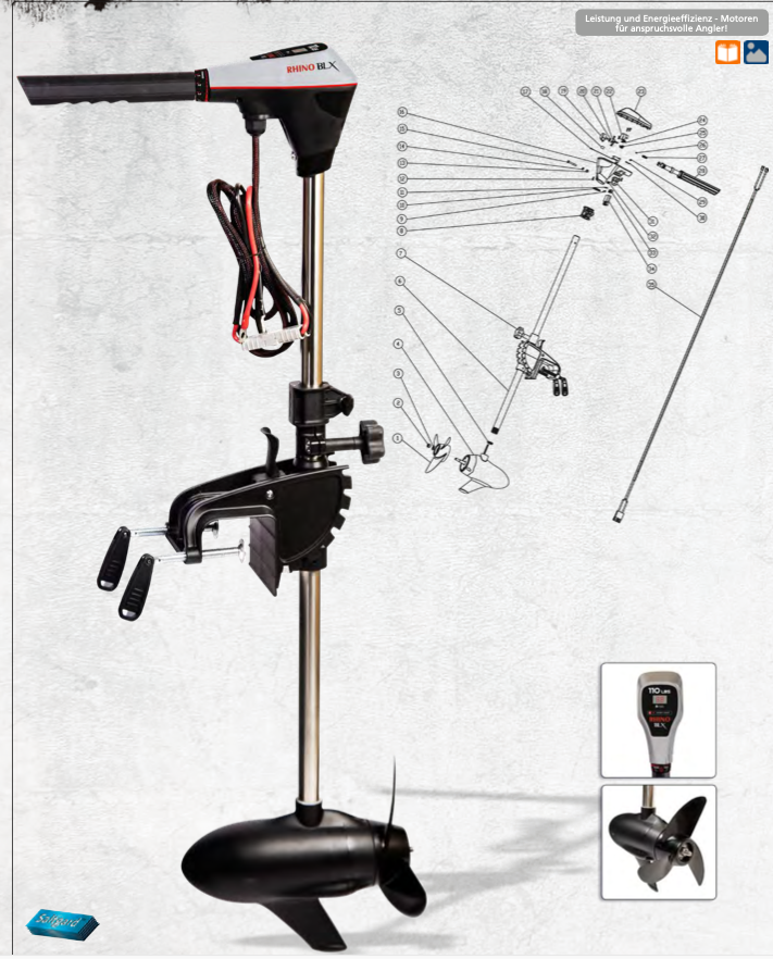 Leistungsstarker Elektro-Außenbordmotor mit 70lb Schub bei 12V Spannung, ca 500W. Entspricht in etwa 2 PS. Wartungsfreie Bauweise, da keine Kohlebürsten als Abnehmer eingesetzt werden. Ein so genannter S Modus (aktivierbar über einen Sport Modus Knopf) bringt den Motor direkt auf Höchstleistung, ansonsten gestattet das Vario Speed-Prinzip vorwärts wie rückwärts eine stufenlose Geschwindigkeitsregelung. Das Display liefert beim Betrieb eine Ladezustands-Anzeige der Batterie. Der Motor verfügt weiterhin über einen USB Anschluss zum Aufladen von Telefonen oder Lampen. Die Pinne ist ausziehbar, der Schaft ist aus Edelstahl gefertigt. Er kann mittels Hebelauslösung hochgeklappt werden, die Eintauchtiefe des Propellers ins Wasser sowie der Lenkdruck sind stufenlos einstellbar. Das Non-Plus-Ultra für den anspruchsvollen Bootsangler.