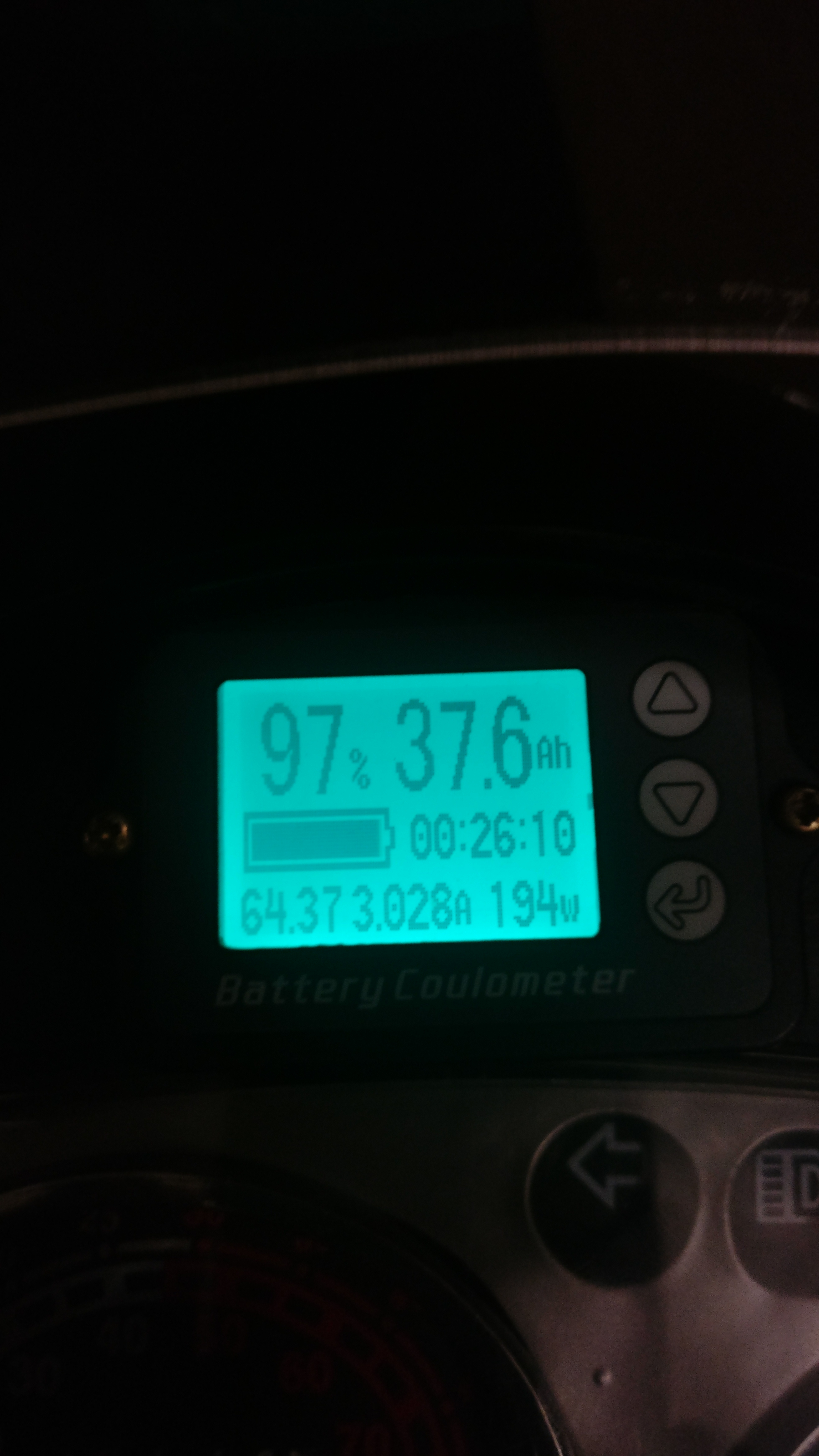 Läuft nach Tacho 52 km/h bei 62V, bin gerade mal am volltanken :-), schön mit dem kleinsten Ladegerät und dann gleich paar Stunden balancieren.