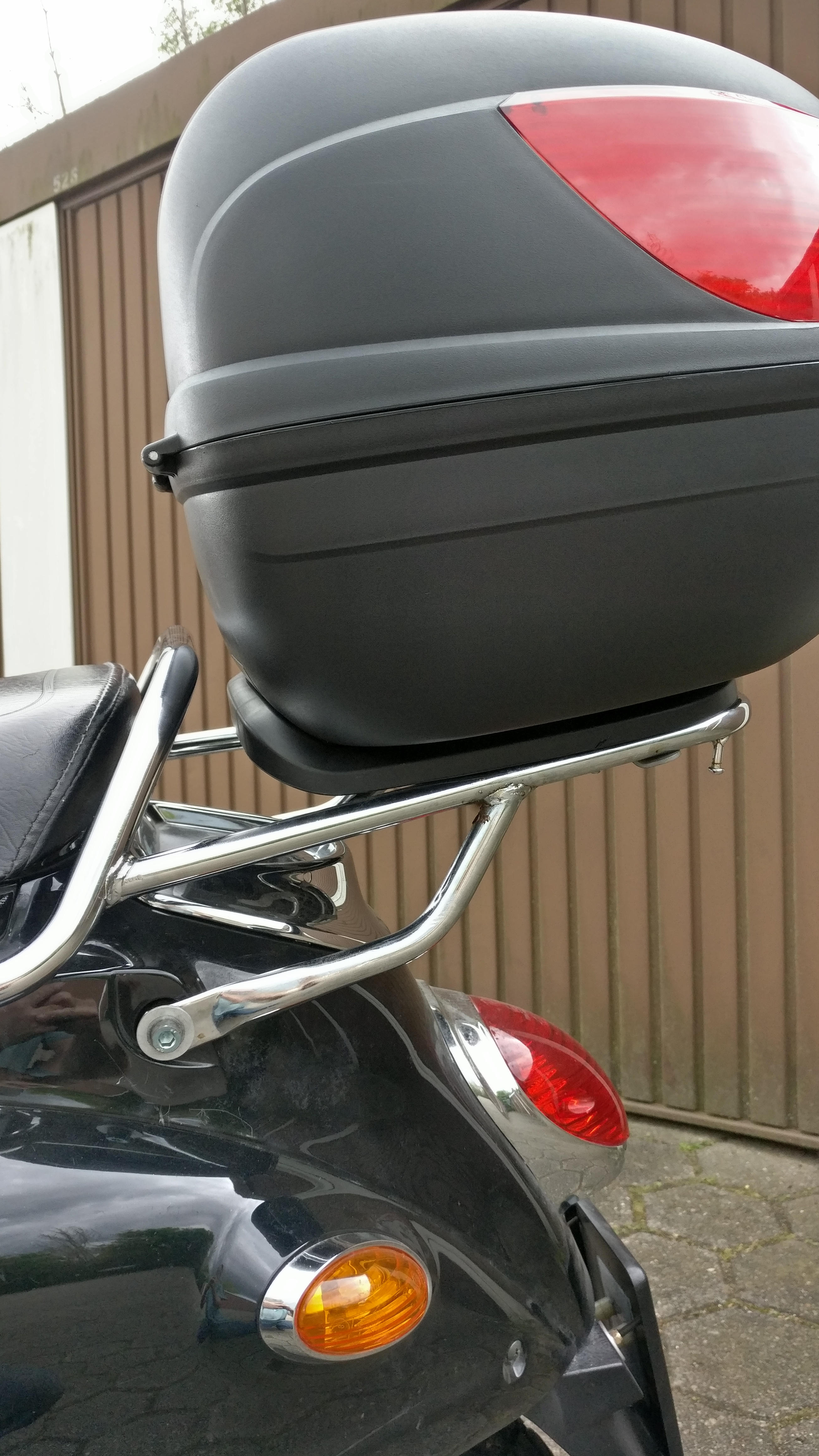 Heute gab es ein gebrauchtes Topcase, beim Alten war etwas Verschleiß an der Schlossmechanik. Es ist sogar eine Bremsleuchte integriert, aber jetzt bleiben die Verkleidungen erstmal dran.