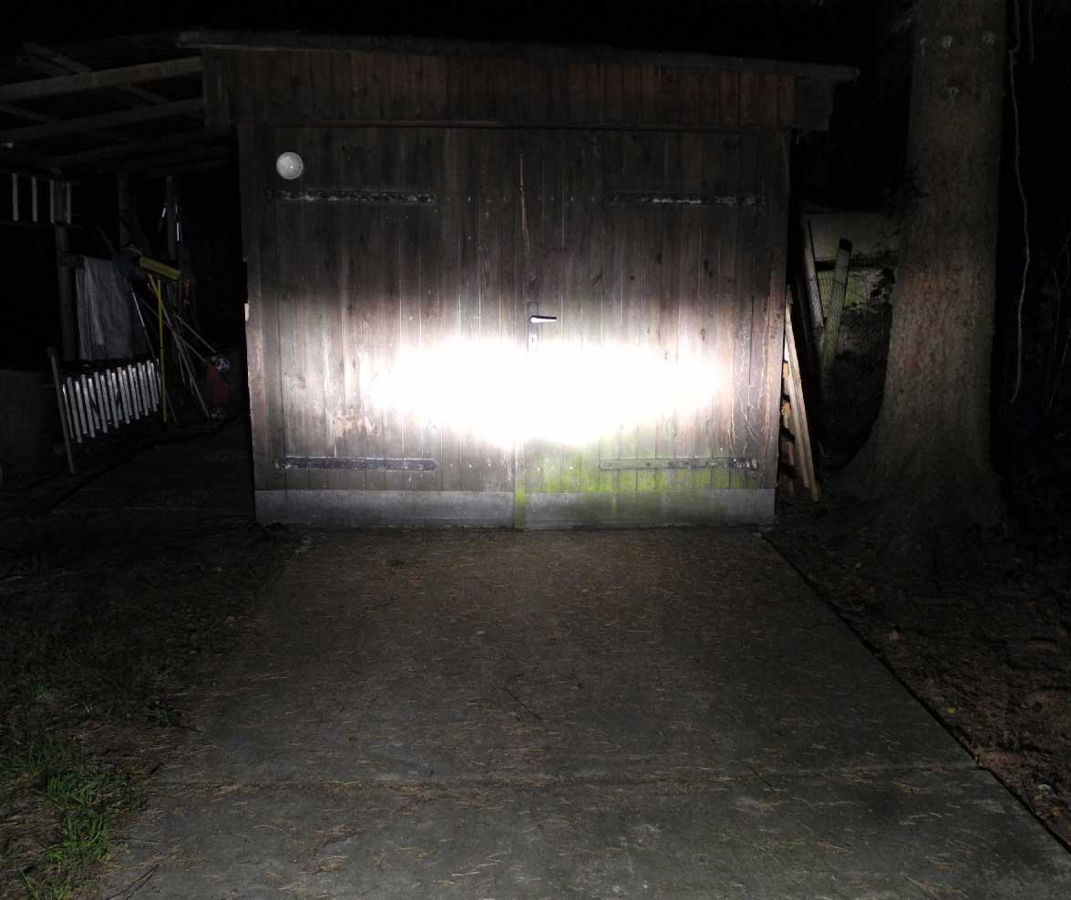 Dann habe ich mich vor den Schuppen gestellt und Foto gemacht mit Original Abblendlicht und einmal mit Fernlicht.