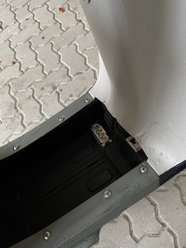 Dann kam mir noch ein anderer Gedenke: wie amüsiert ist wohl der Akku, wenn er mindestens drei Monate bei Akkustand 0 beim Händler steht? Etwas ähnliches könnte sich der Akku gedacht haben, denn er ließ sich nicht aus dem Roller entfernen - der Stecker war wohl irgendwie festgebacken.