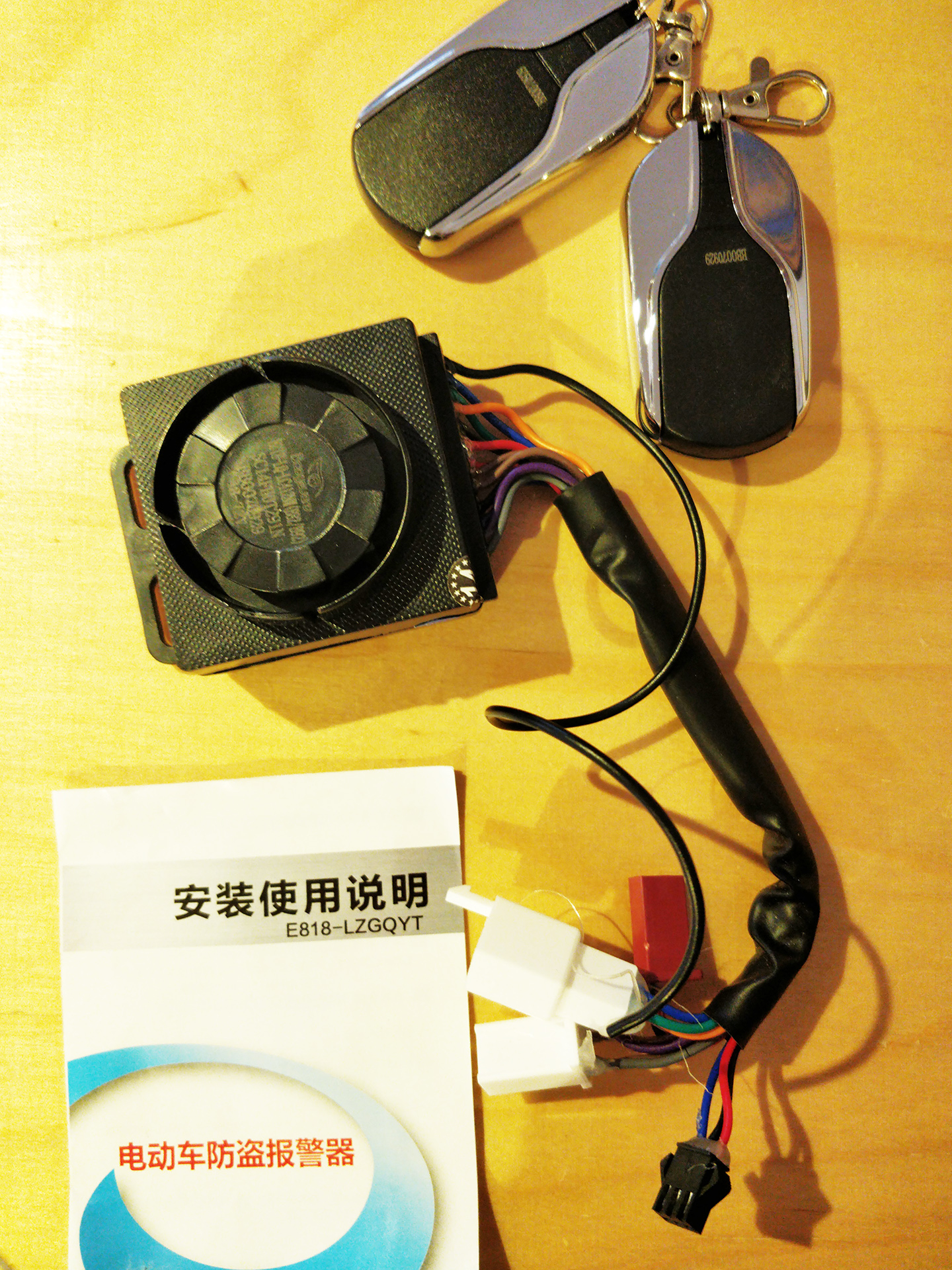Die Alarmanlage bzw. sehr ähnliche Komponenten findet man übrigens bei Banggood bereits um wenig Geld sieht ca. so aus: https://www.banggood.com/sv/48V-72V-125 ... rehouse=CN - aber es wird eine Variante mit 4 Steckern und nicht mit einem benötigt. Siehe Bild: Alles in allem: