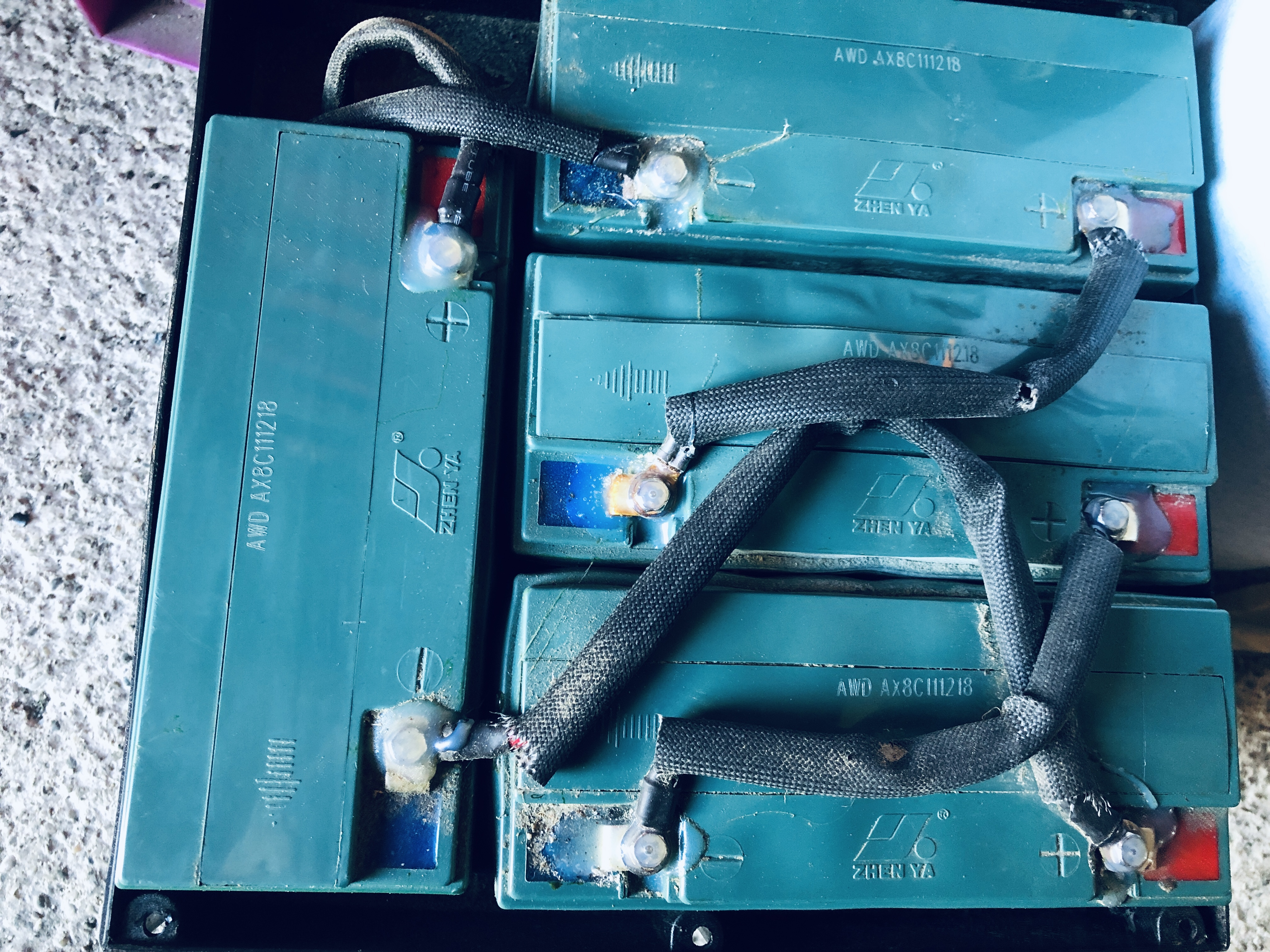 ich habe gestern einen bastler Elektroroller Marke Kreidler Hiker geholt. Baujahr 2012, Erstzulassung 2016. Kilometerstand 2300km. Batterien in einem Block sind fast alle kaputt, siehe Bilder, in anderem Block (unter dem Sitz) schauen noch gut aus und haben laut Multimeter noch 50V (voll geladen).