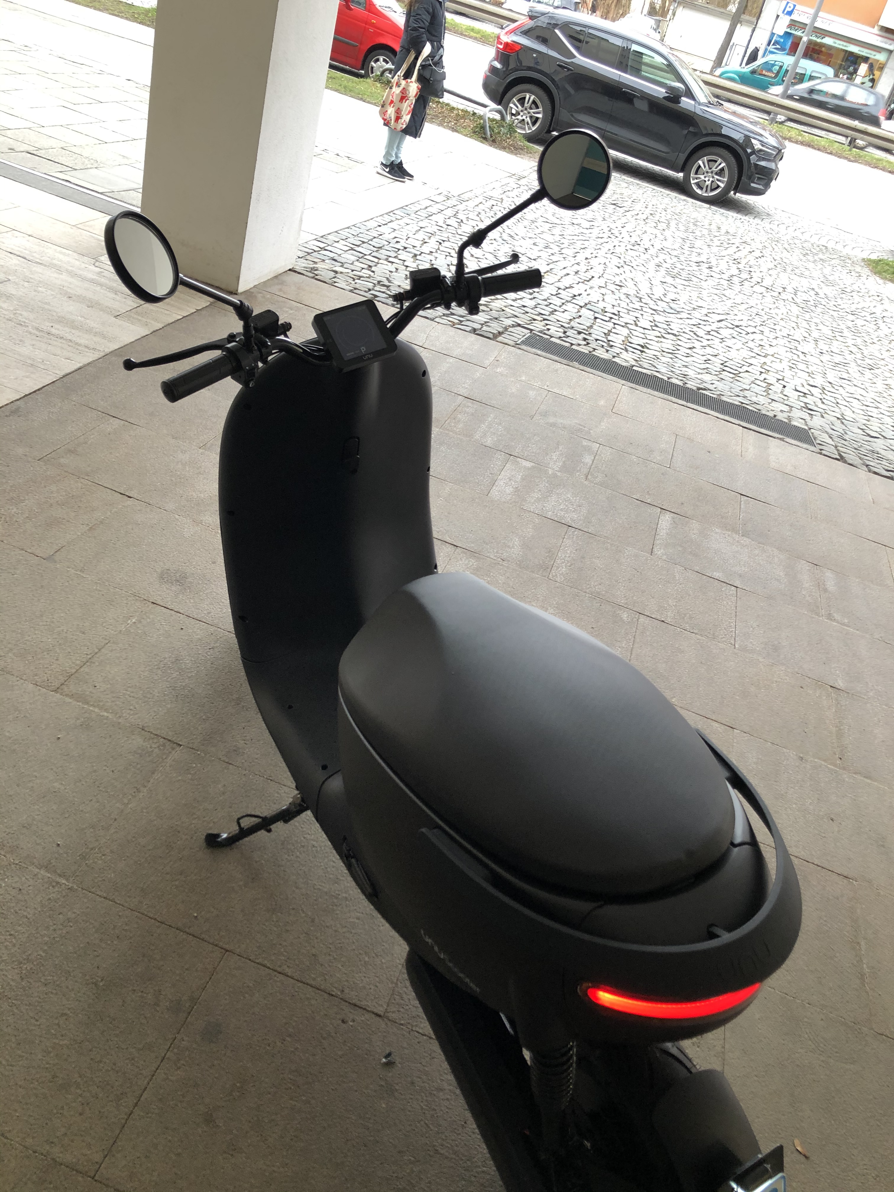 Habe heute schon eine halbstündige Runde drehen können und es macht auch bei der Kälte einfach Spaß. Die Beschleunigung auf den ersten Metern würde ich beim unu Classic (und da hatte ich nur den 2kW) als schneller einschätzen, aber das könnte auch am Gewicht der Rollers liegen. Die Akkuanzeige zeigt im Parkmodus die Prozentzahl an, bei Fahrt sieht man nur die Balken - finde ich auch okay so!
