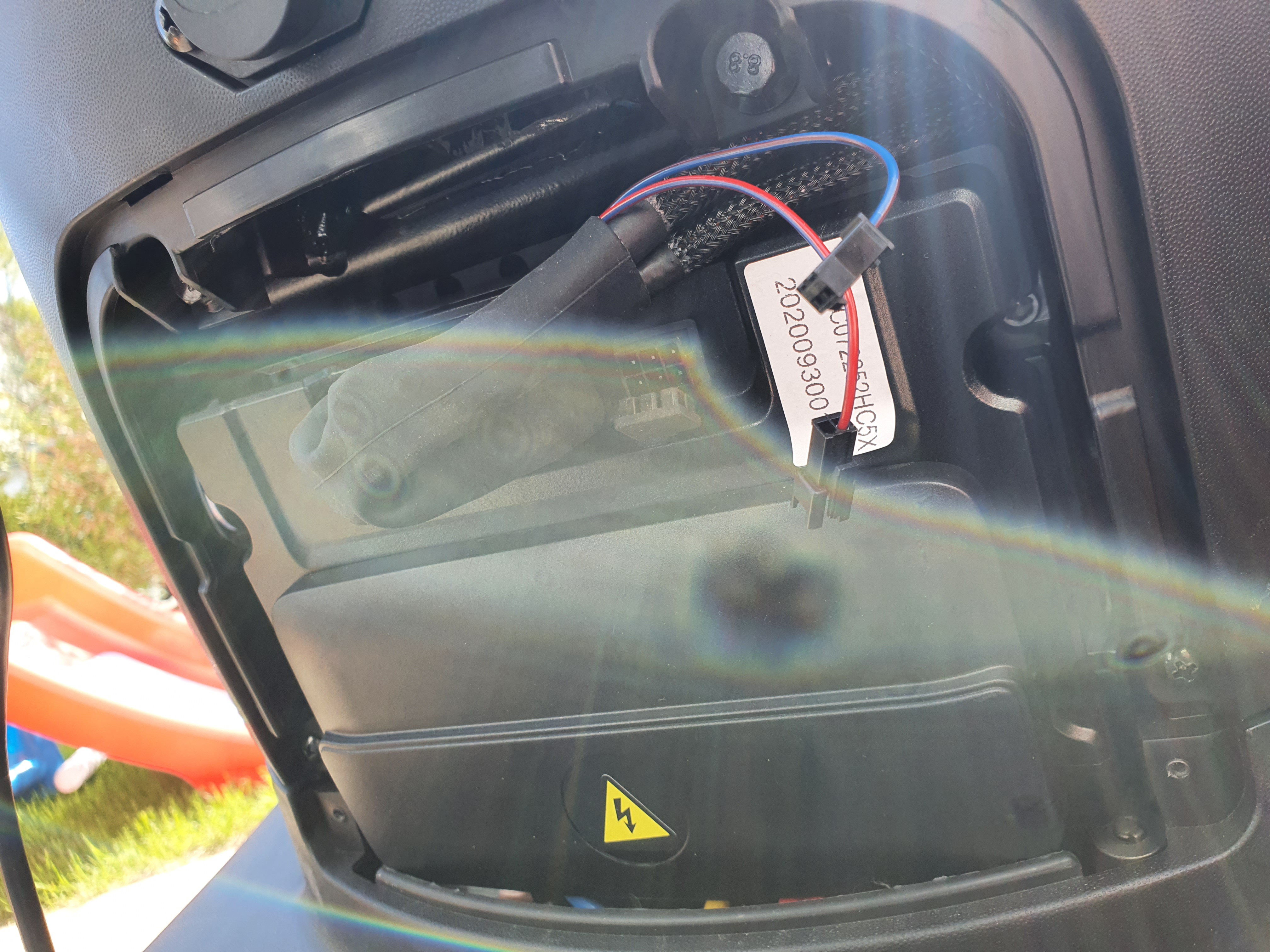 2. Ladegerät im Helmfach platzieren (mit Lüftungslöcher) und eine Dose wie bei der Horwin CR6 setzen.