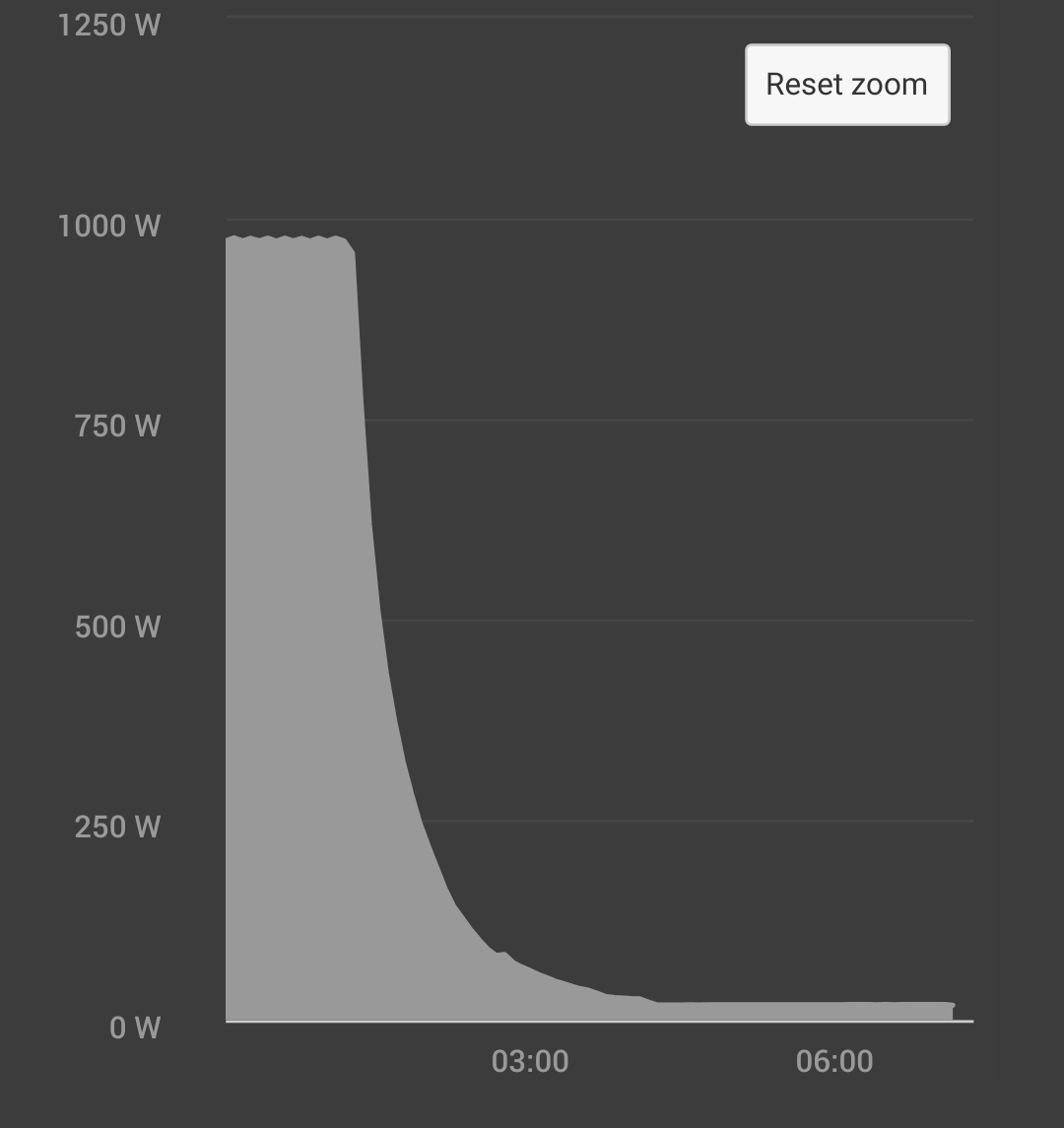 Die Ladekurve sieht am Ende so aus: (MQI GT, 2 Akkus gleichzeitig)