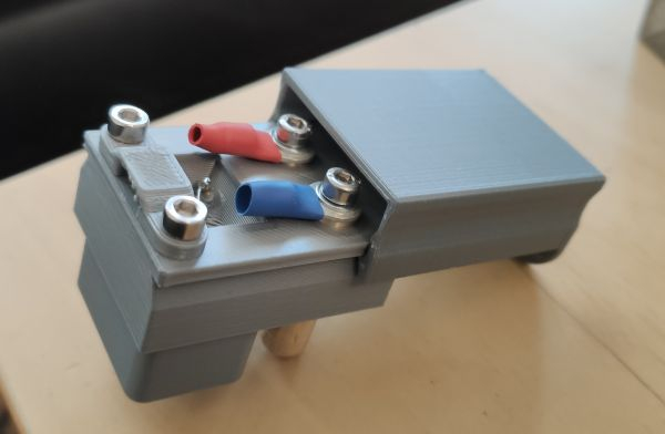 Ich habe den Deckel doch noch etwas höher gemacht und 4-6mm² Crimp-Kabelschuhe besorgt. Deren Isolation musste ich allerdings etwas kürzen. Mit dem höheren Deckel kann man den Stecker am Akku auch besser abziehen.