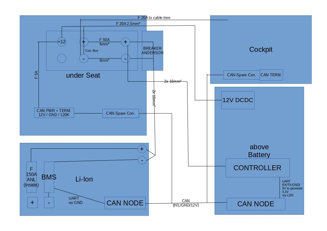 Hab den Anderson Stecker unter den Sitz verlegt als Not-Aus-Schalter und den Automaten Entsorgt. Im Akku sitzt vor dem BMS noch eine 150A ANL Sicherung fürs Gewissen. Vorher hat beim Kurzschlusstest aber das BMS reagiert und gekappt.
